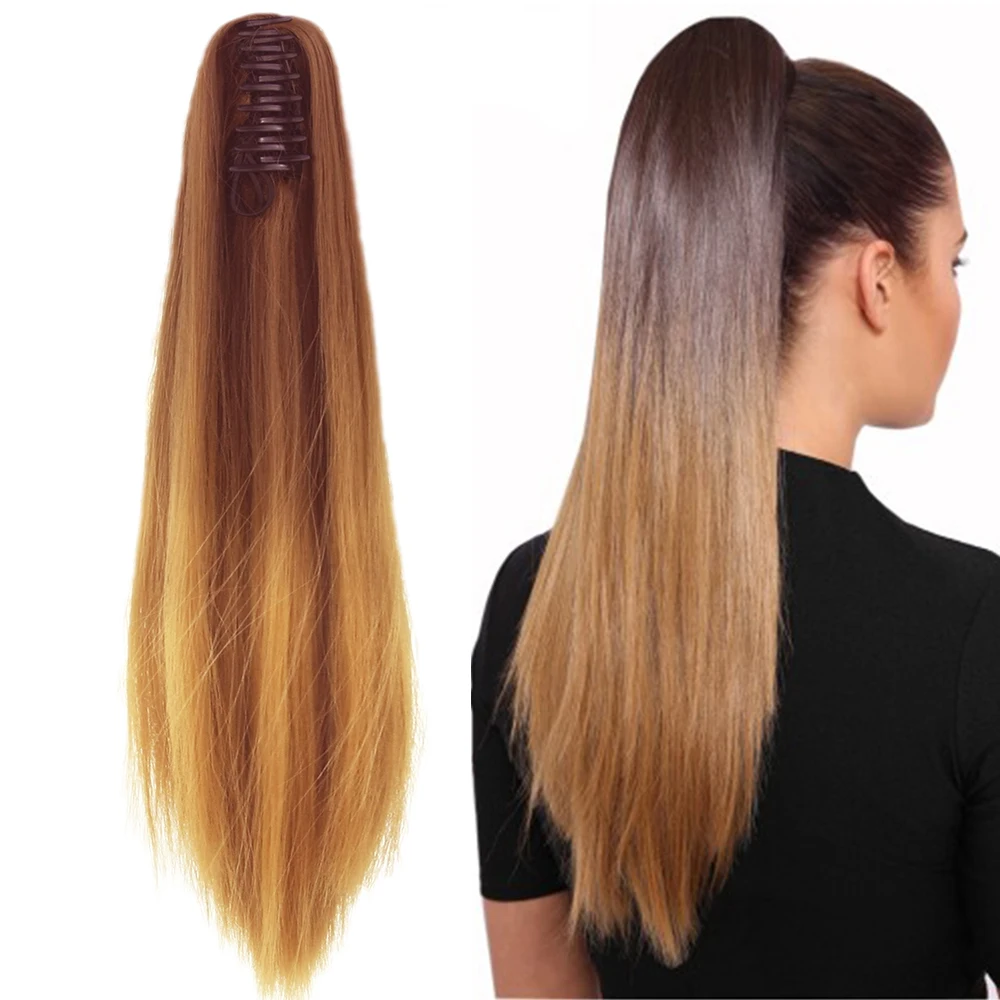 Soowee 24 ''прямые синтетические волосы на заколках для наращивания, коричневые, серые, когти, конский хвост, высокотемпературные волосы из волокна, хвост пони