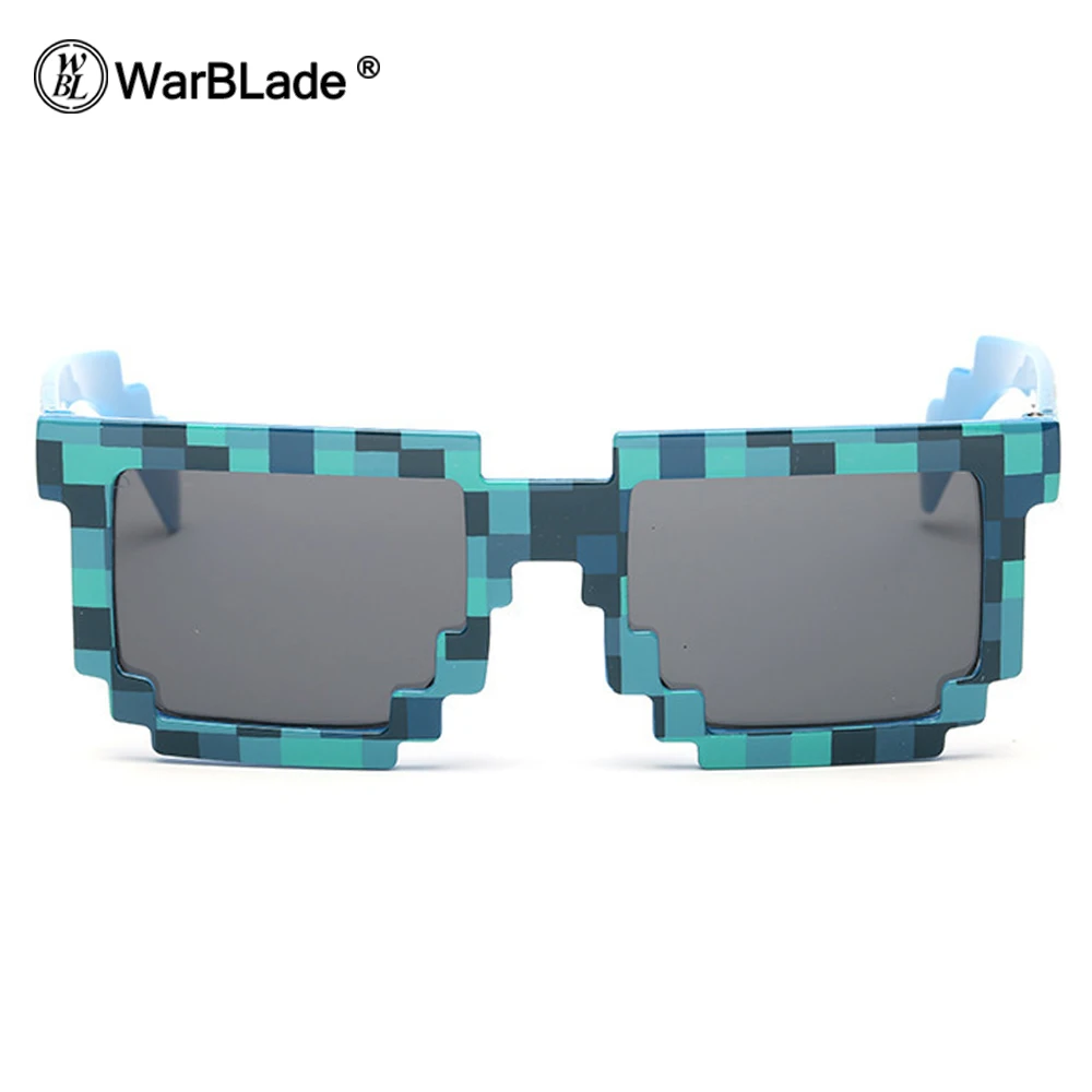 Модные детские солнцезащитные очки WarBLade, квадратные мозаичные солнцезащитные очки, Детские пиксельные солнцезащитные очки, модные очки для мальчиков и девочек с чехлом