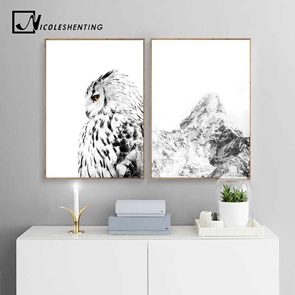 NICOLESHENTING белая сова Снежная гора Холст плакат пейзаж настенные художественные принты скандинавский стиль картина украшение для дома