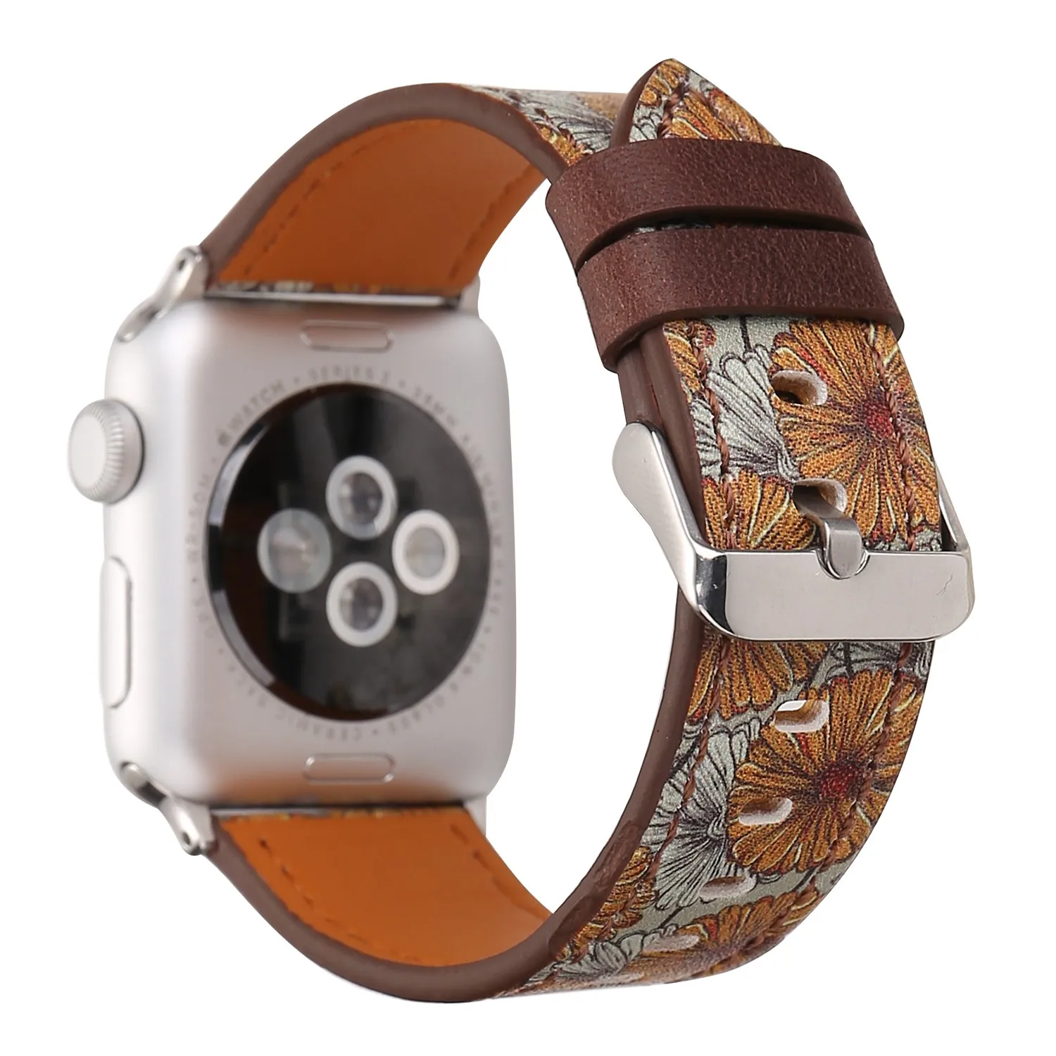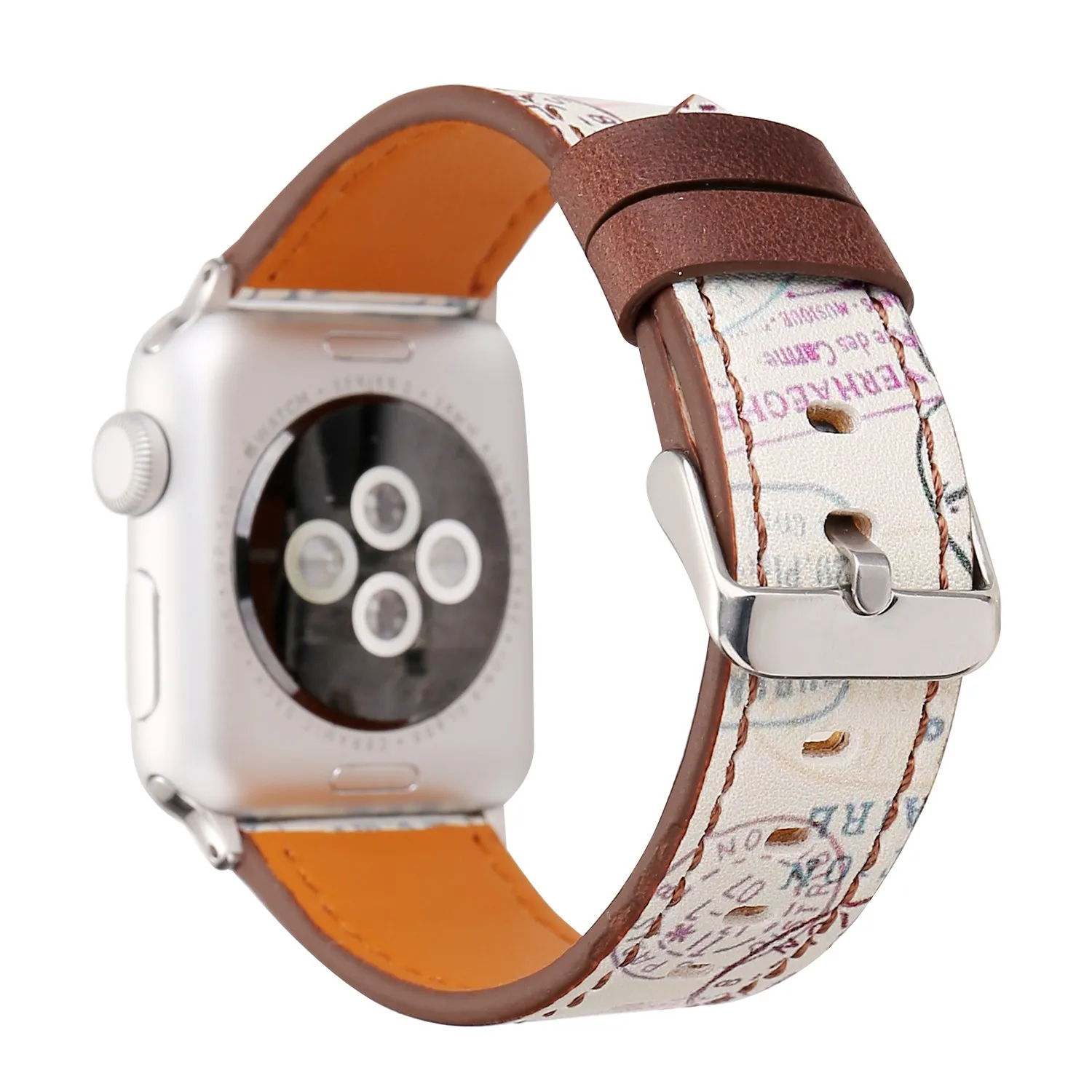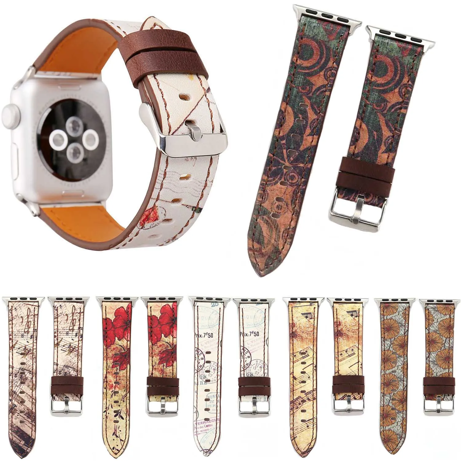Кожаный ремешок для часов Apple Watch Series 5, 4, 3, 2, 1, с винтажным цветочным рисунком, ремешок для музыкальных нот для iWatch 38, 40, 42, 44 мм, ремешок для браслета