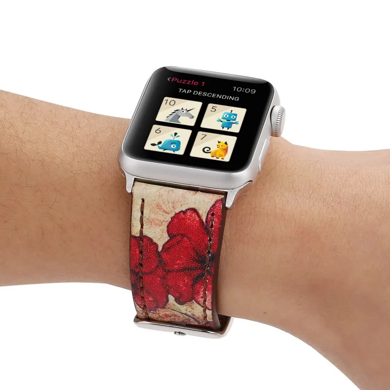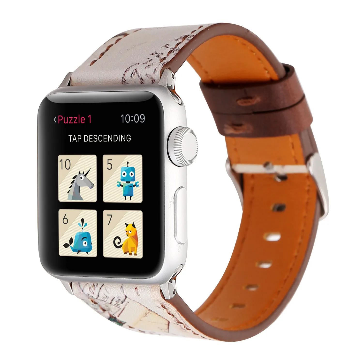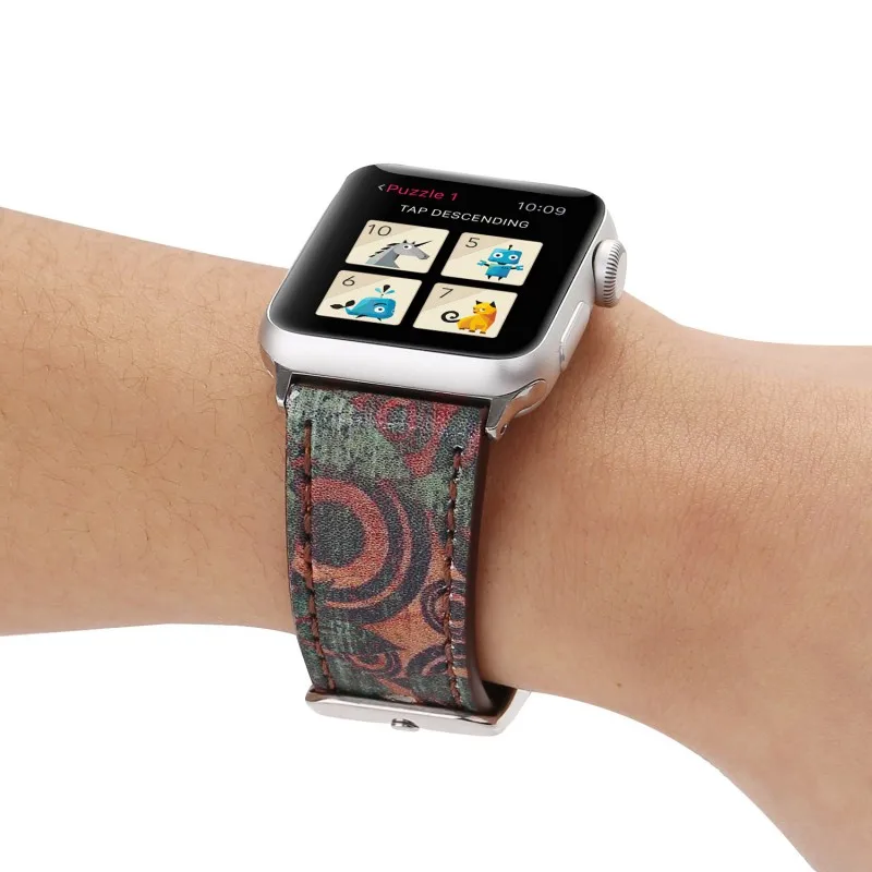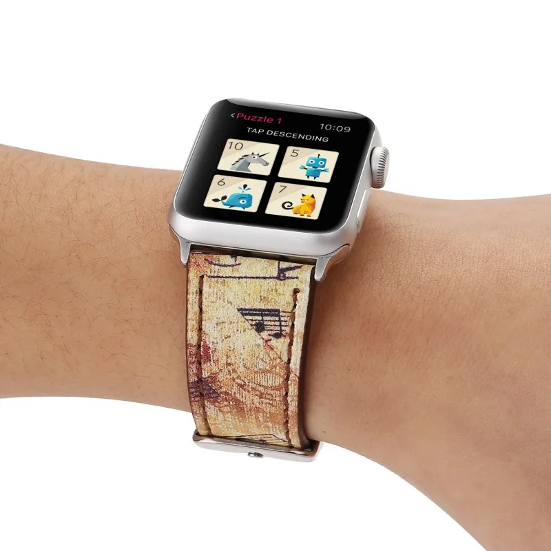 Кожаный ремешок для часов Apple Watch Series 5, 4, 3, 2, 1, с винтажным цветочным рисунком, ремешок для музыкальных нот для iWatch 38, 40, 42, 44 мм, ремешок для браслета