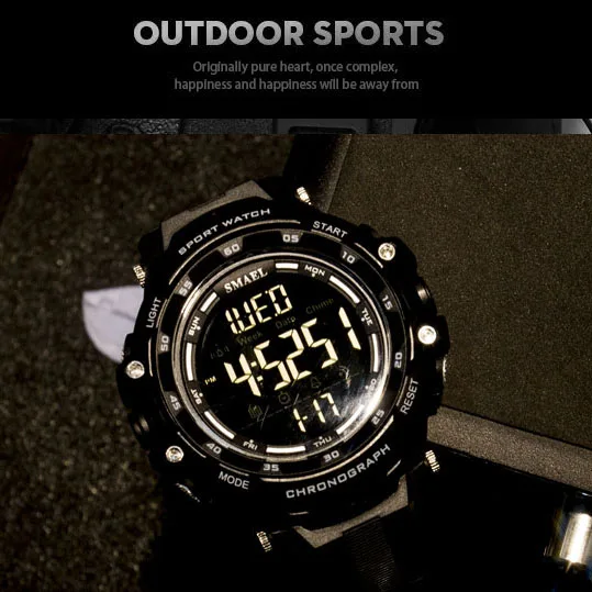 Светодиодный браслет цифровые часы SMAEL часы Для мужчин Relogio Masculino цифровой Wrsit большой циферблат 1350 спортивные часы Для мужчин Водонепроницаемый