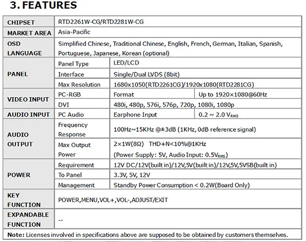 M. RT2261 может поддерживать динамическое контрастное управление, вход для наушников и цифровое управление громкостью одновременно.