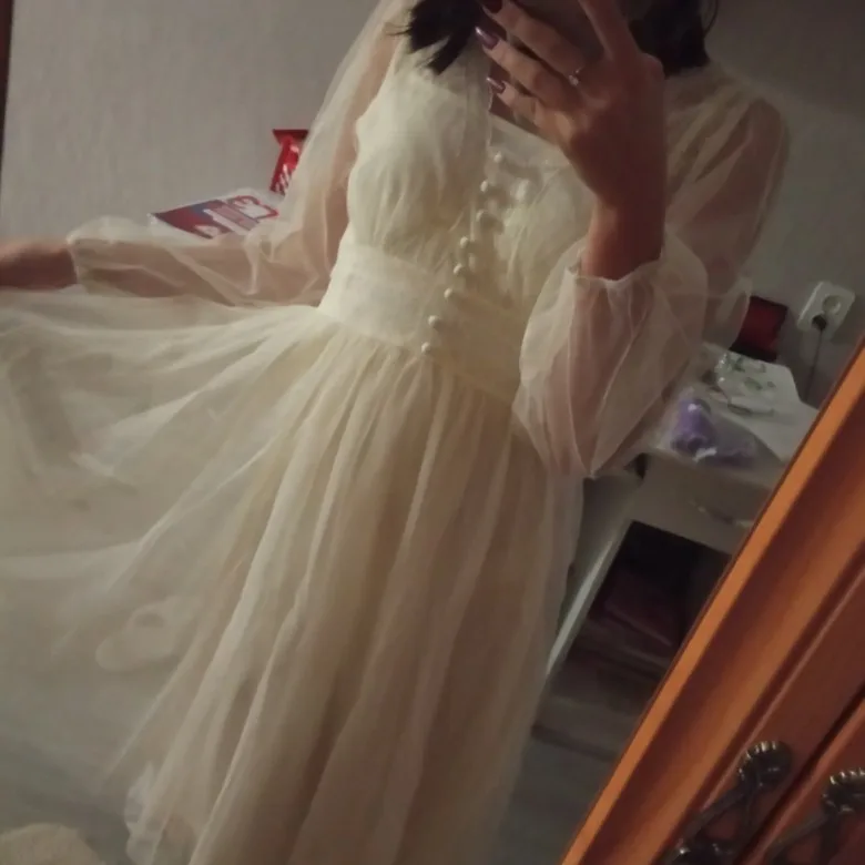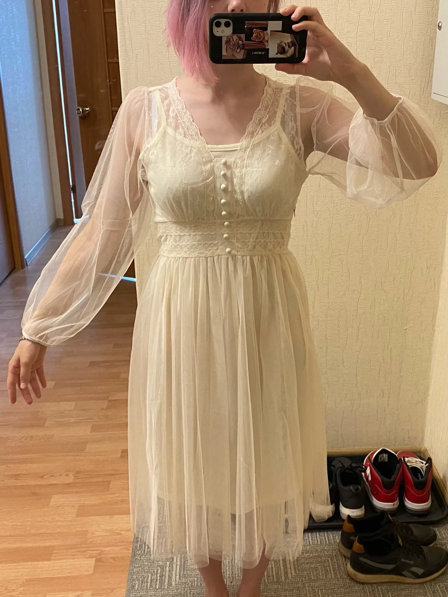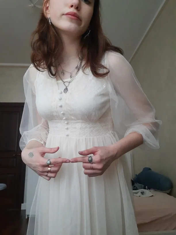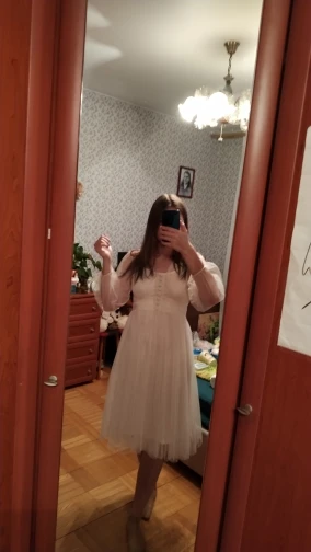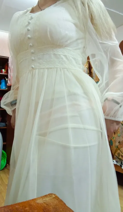 безумно красивое платье,в точности как на картинке.пришло где то дней за 12,единственный минус это то что оно не много просвечивает.теперь я cottagecore фея ахах