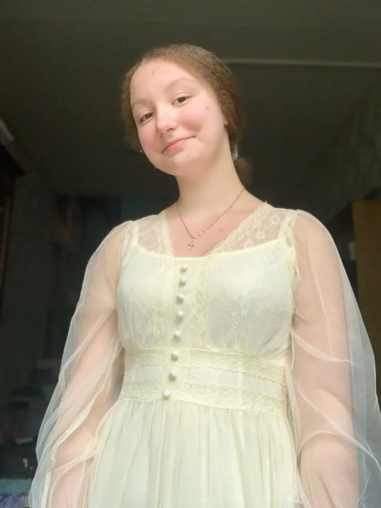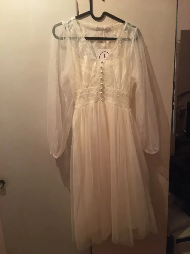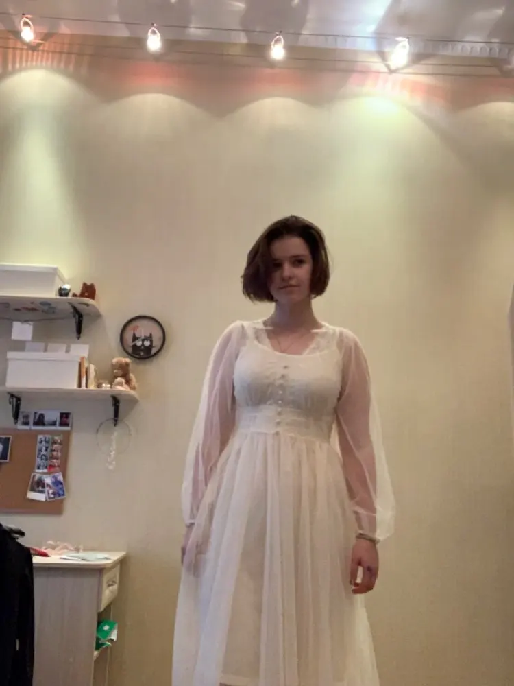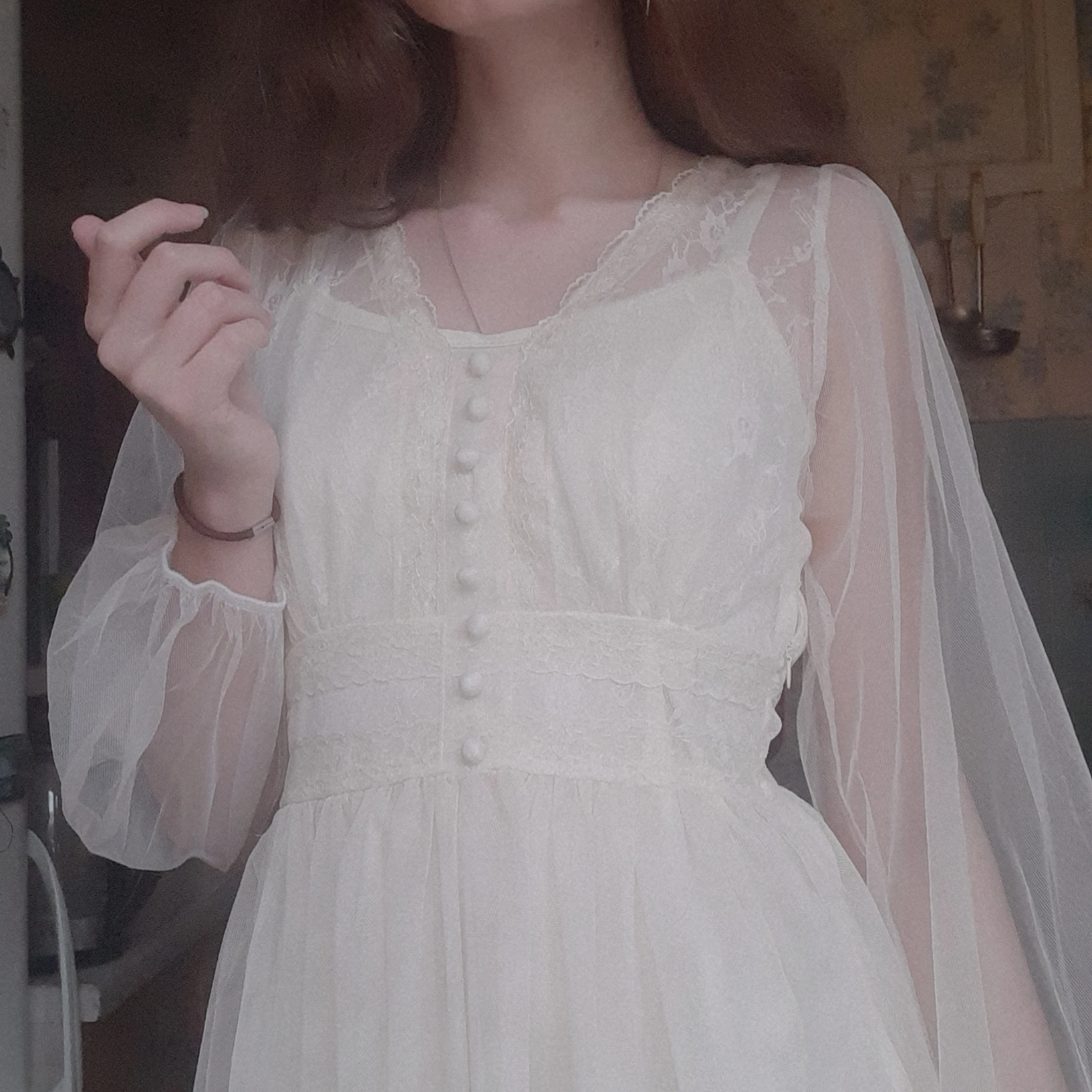 безумно красивое платье,в точности как на картинке.пришло где то дней за 12,единственный минус это то что оно не много просвечивает.теперь я cottagecore фея ахах