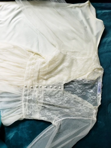 Потрясающий, отличный материал, поставляется с платьем-комбинация, который можно носить под одеждой, в целом великолепный, но немного более кремовый/молочный, чем на изображениях