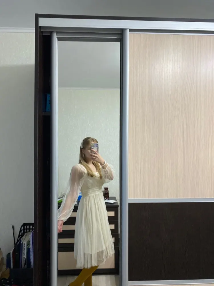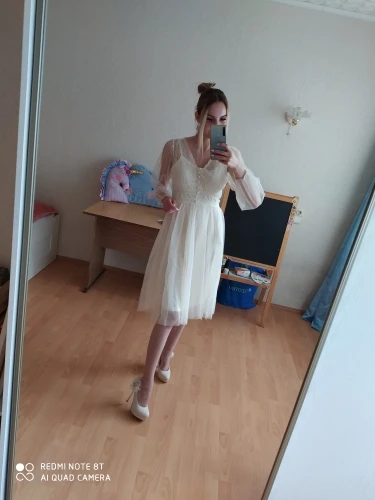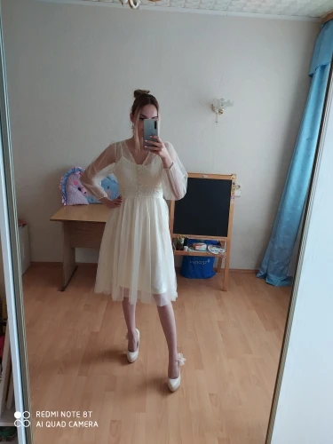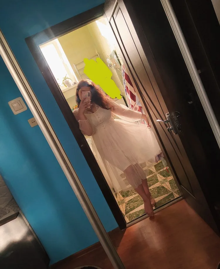 Красивое платье. Боялась, что на рост 177 и среднее телосложение будет выглядеть громоздко, но нет, в жизни смотрится очень мило, особенно верхняя часть :) Ну и на мои достаточно длинные руки, рукава оказались коротки, но это не критично. Единственный минус, о котором многие уже писали, так это то, что оно просвечивает белье, поэтому под него надо будет надевать телесное белье. И наконец цвет. Как только я его открыла, оно мне показалось вообще оочень жёлтым, но как только я его примерила, поняла, что цвет на самом деле отличный, не ярко-белый и не слишком жёлтый. В общем, я довольна. Доставка в Питер быстрая. <3