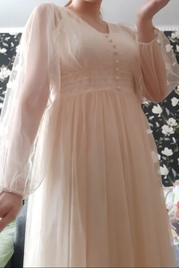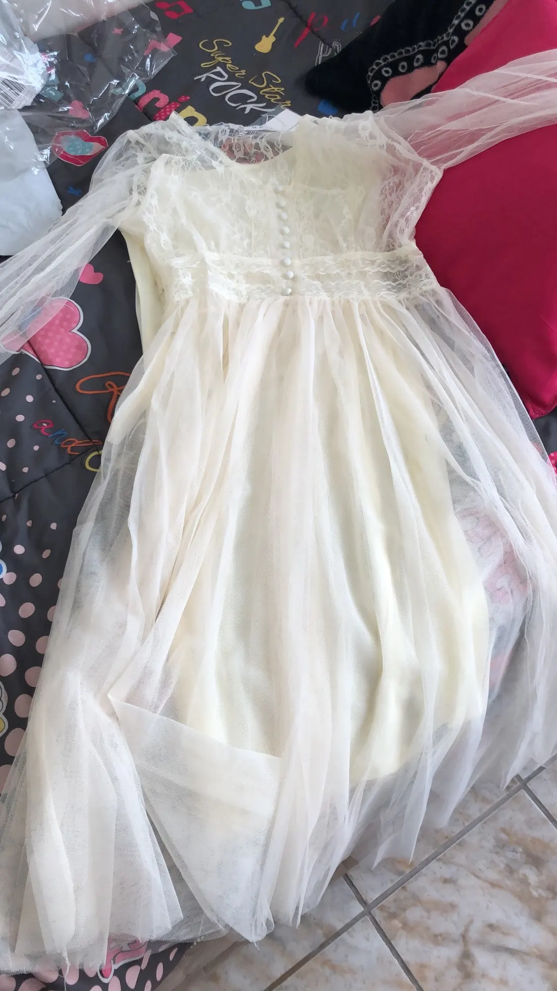 Заказанный в начале января. Получил сегодня. Само Платье великолепное, цвет кремово-бежевый. Качество тюля впечатляющее. Комбинация, однако, сделана из такой дешевой ткани и отделки, хотя они идеальны, они по-прежнему выглядят дешево. Обязательно носите его, но с другой прошивкой. По этой цене я рад, что, по крайней мере, качество платья слишком высокое. Также прозрачный материал. Для роста 165 см платье покрывает мои колени размером M. Если я получу еще 2 кг, платье мне не подойдет. Обычно я европейский размер XS.