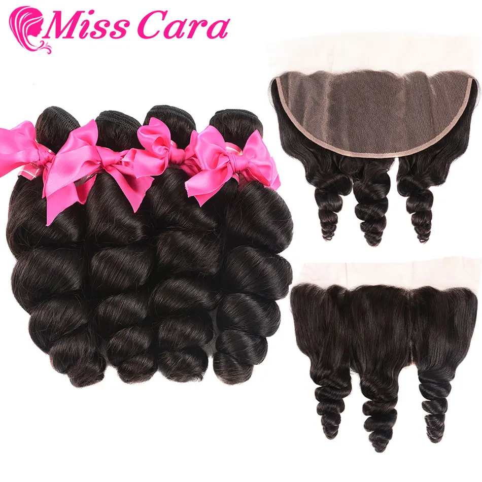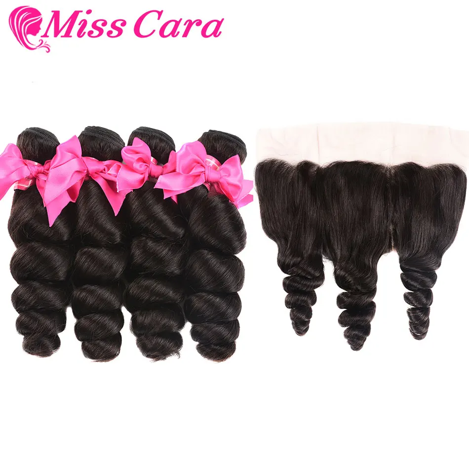 Перуанские пучки свободных волн с фронтальной 100% человеческие волосы 34 пучки с фронтальной Miss Cara Remy передние волосы пряди