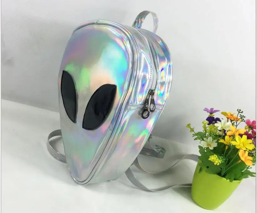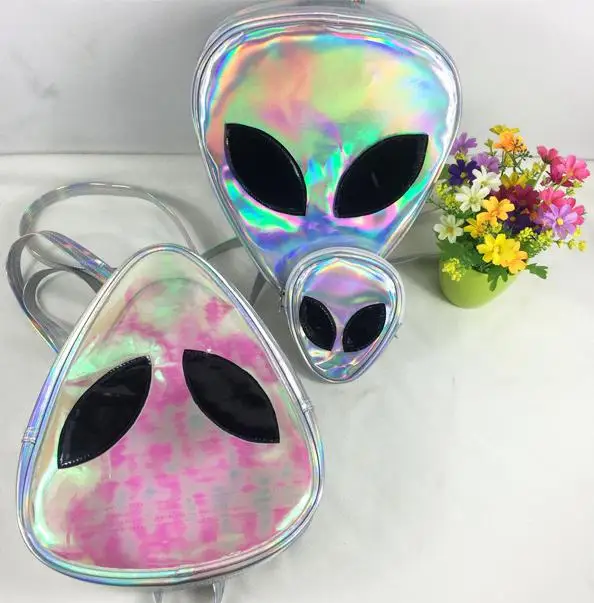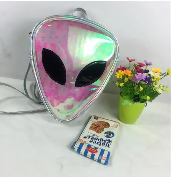 Прозрачный рюкзак с лазерным рисунком для мальчиков и девочек, модный треугольный ранец унисекс с 3D Дизайном головы и лица инопланетянина, удобная сумка