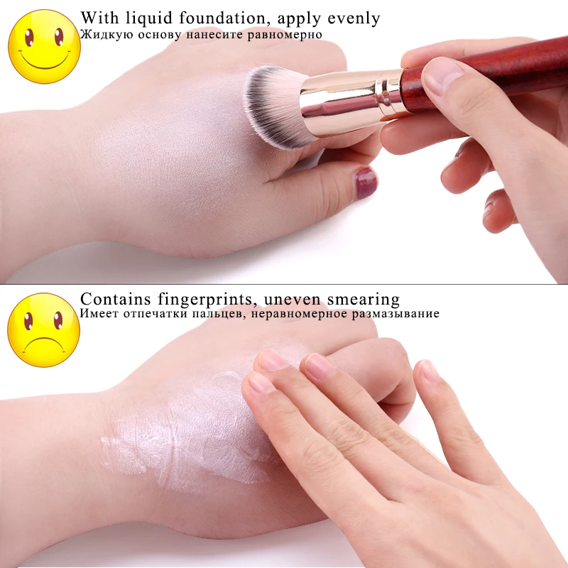 Кисть идеальная! Есть разные кисти для тона, но эта пока лучшая! По нанесению она очень напоминает упругий кушон - это, вероятно, от самого ворса, степени набитости и формы зависит. Плюс деревянная ручка и маловпитываемость продукта, и цена.. Отлично! 10/10. Спасибо за отличный товар!