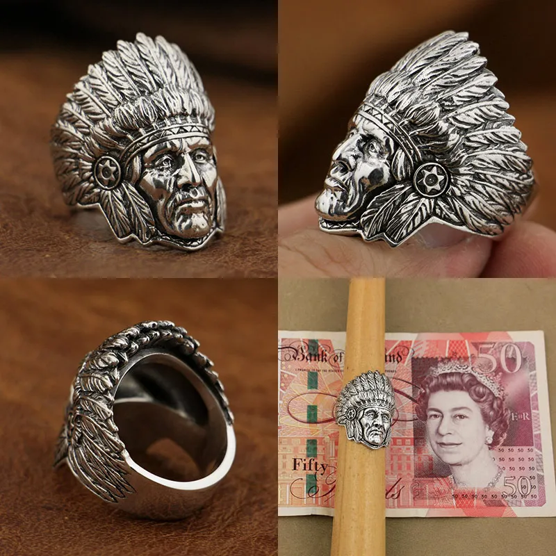 LINSION 925 пробы, серебряное индийское кольцо вождя, мужское байке...
