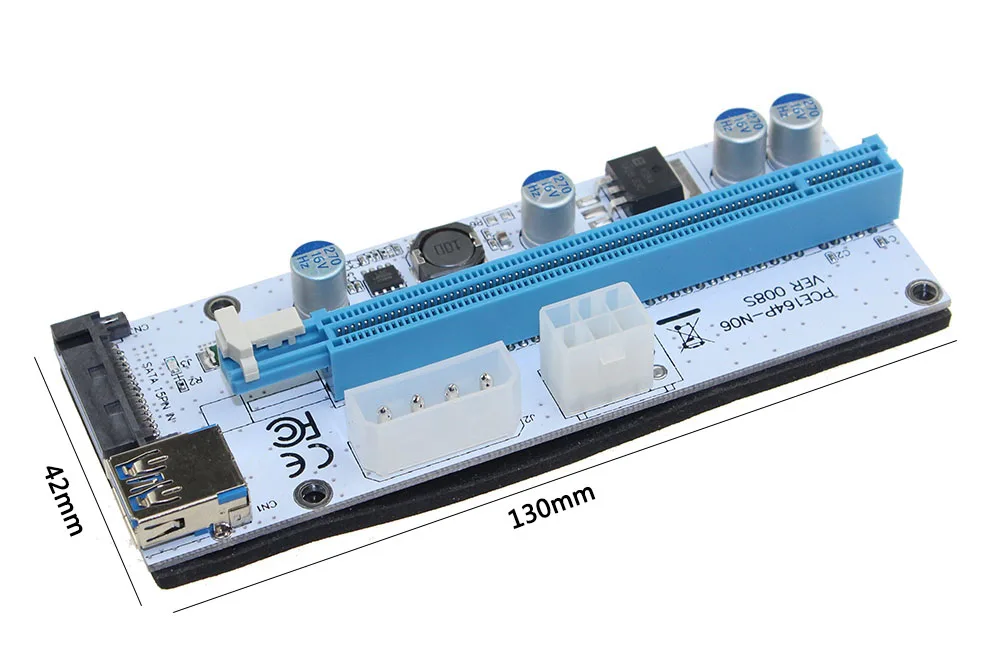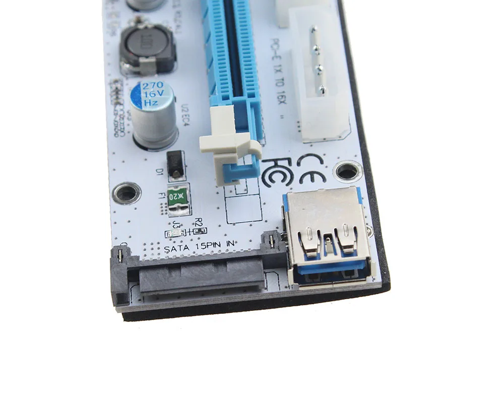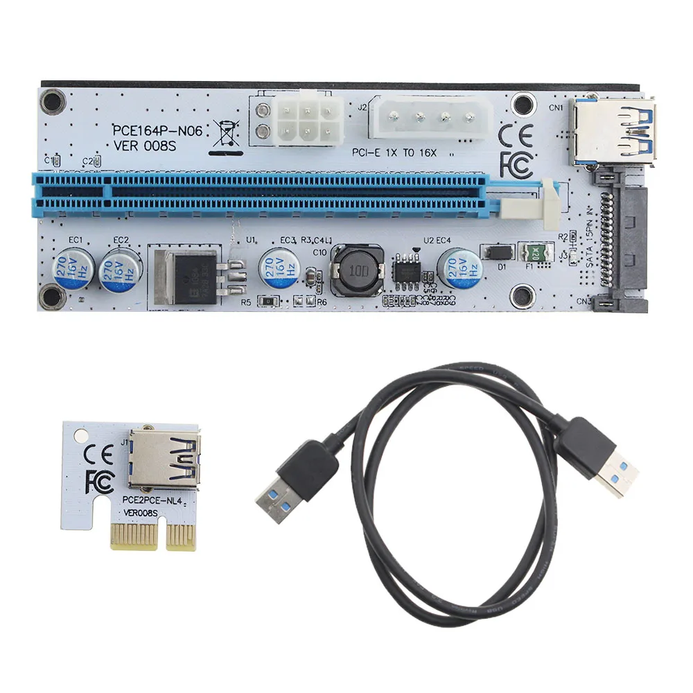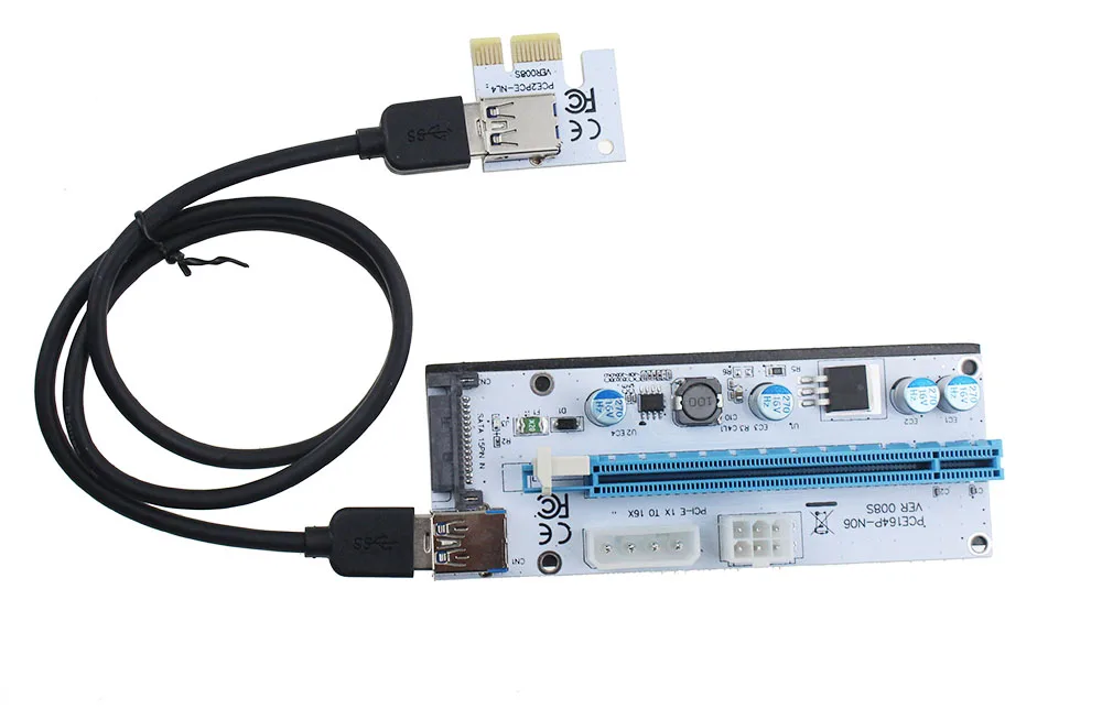 6 шт. VER008S 3 в 1 Molex 4Pin SATA 6PIN PCIE PCI-E PCI Express Riser Card 1x к 16x USB 3,0 кабель для майнинга Биткоин Майнер