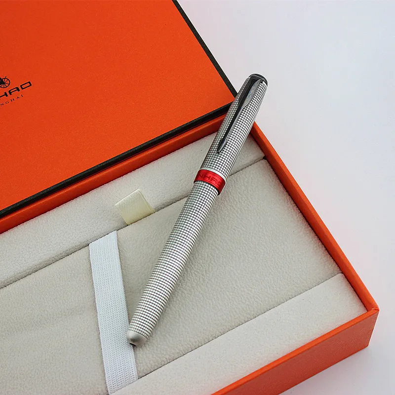 Ручка перьевая jinhao 75 с повторной гравировкой, Классическая винтажная полностью металлическая, с клетчатым принтом, подарочный набор для письма, чернильная