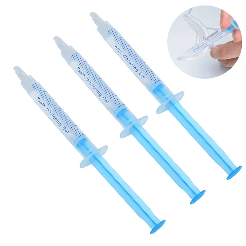 4 Daub Отбеливание зубов гель равномерно на поверхности синий светильник, толщина около 1 мм