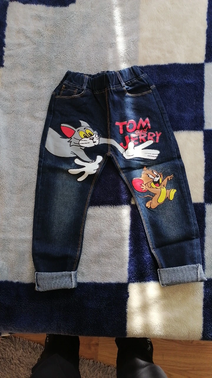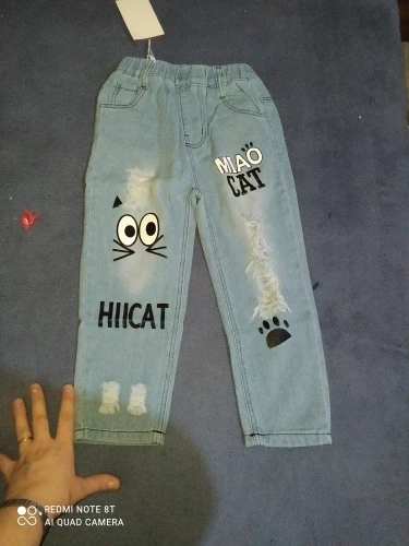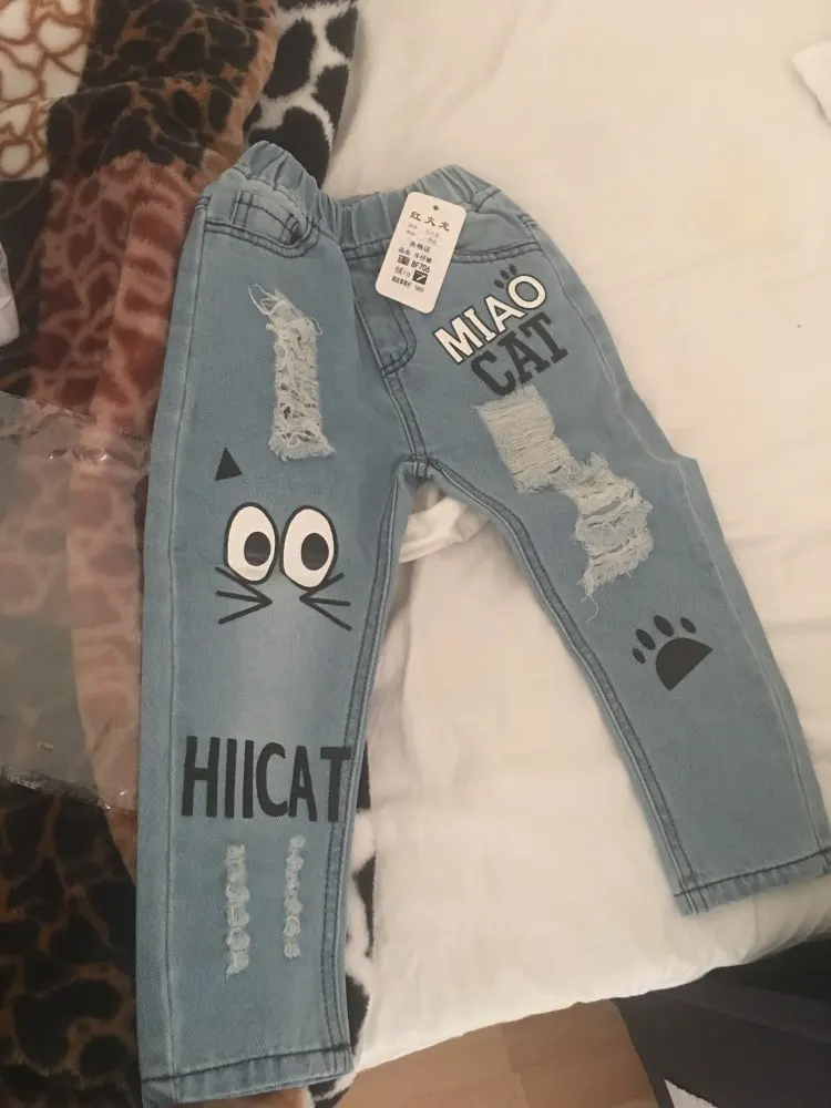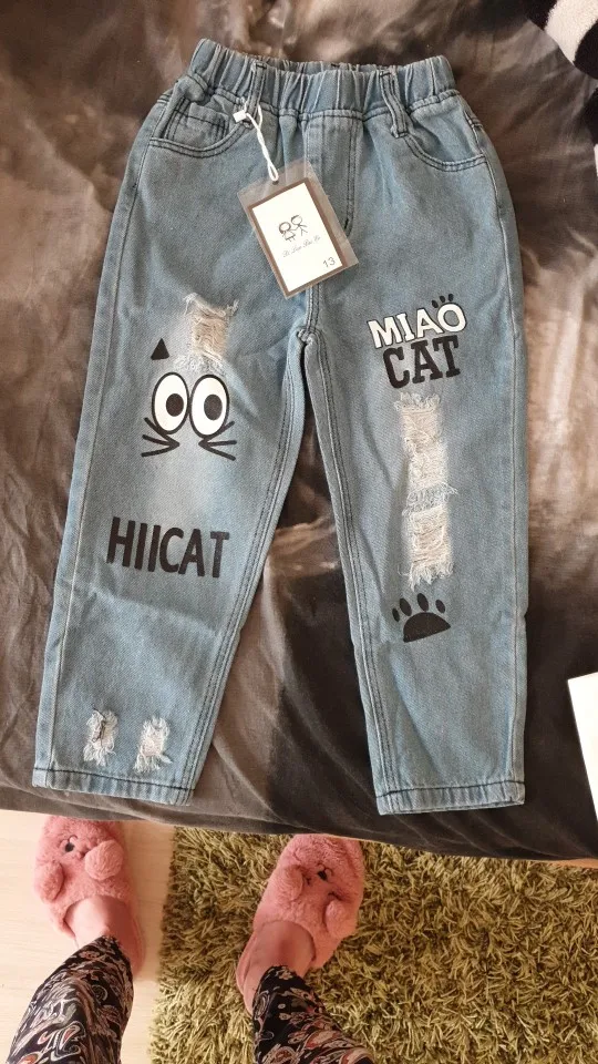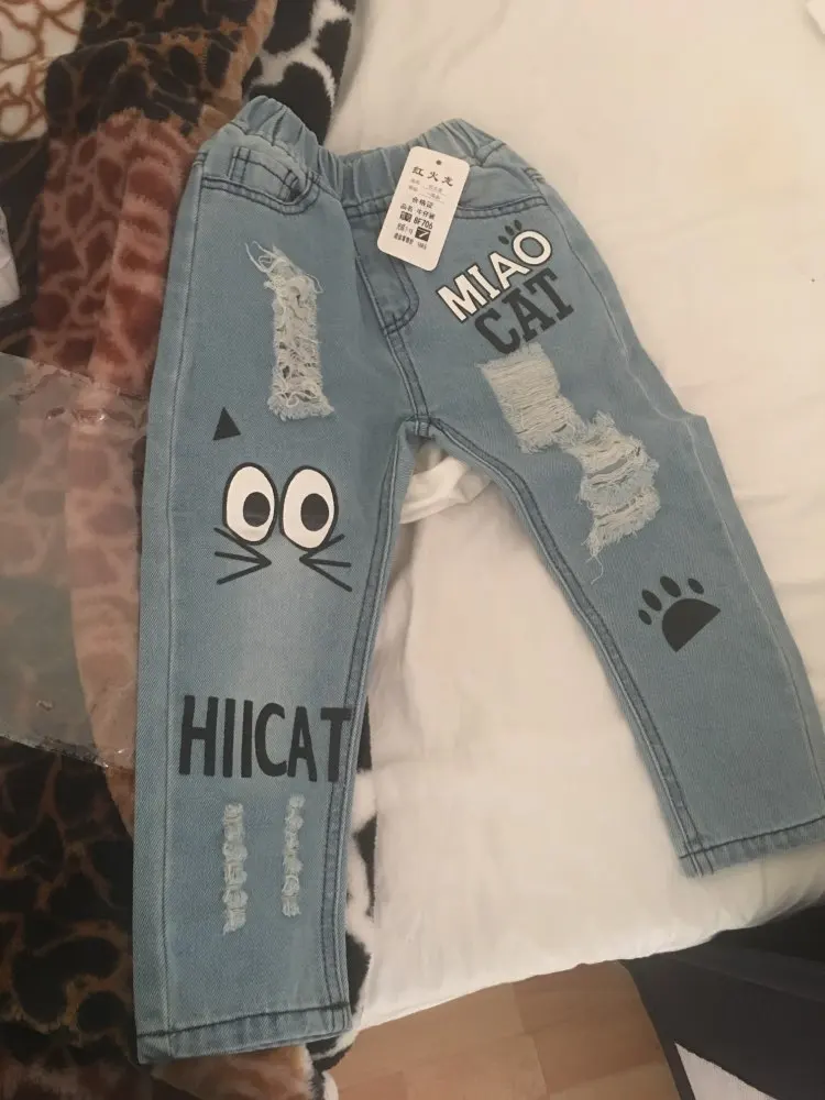 Джинсы для мальчиков и девочек, на возраст 1-7 лет, повседневные штаны, джинсы с мультяшным котом, 2019