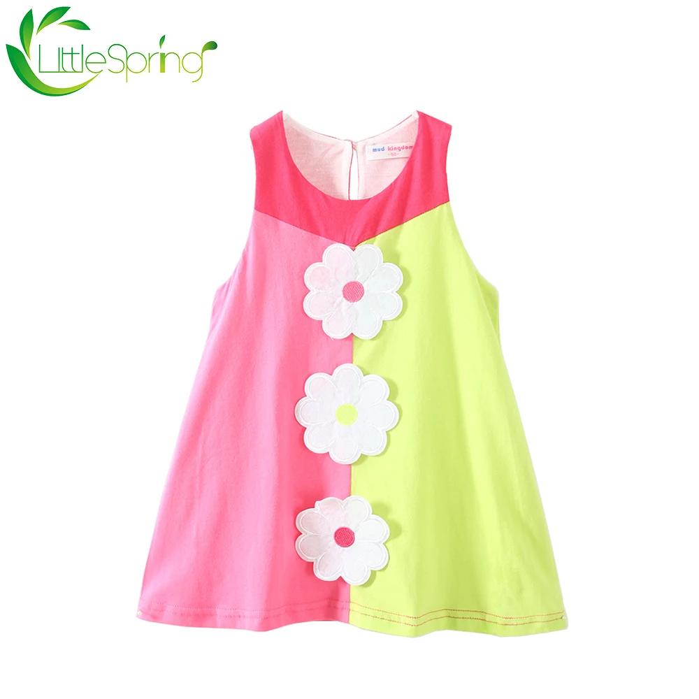 LittleSpring 2020, платье для девочек, летнее клетчатое платье, цветочный дизайн, детское платье, детская одежда для девочек