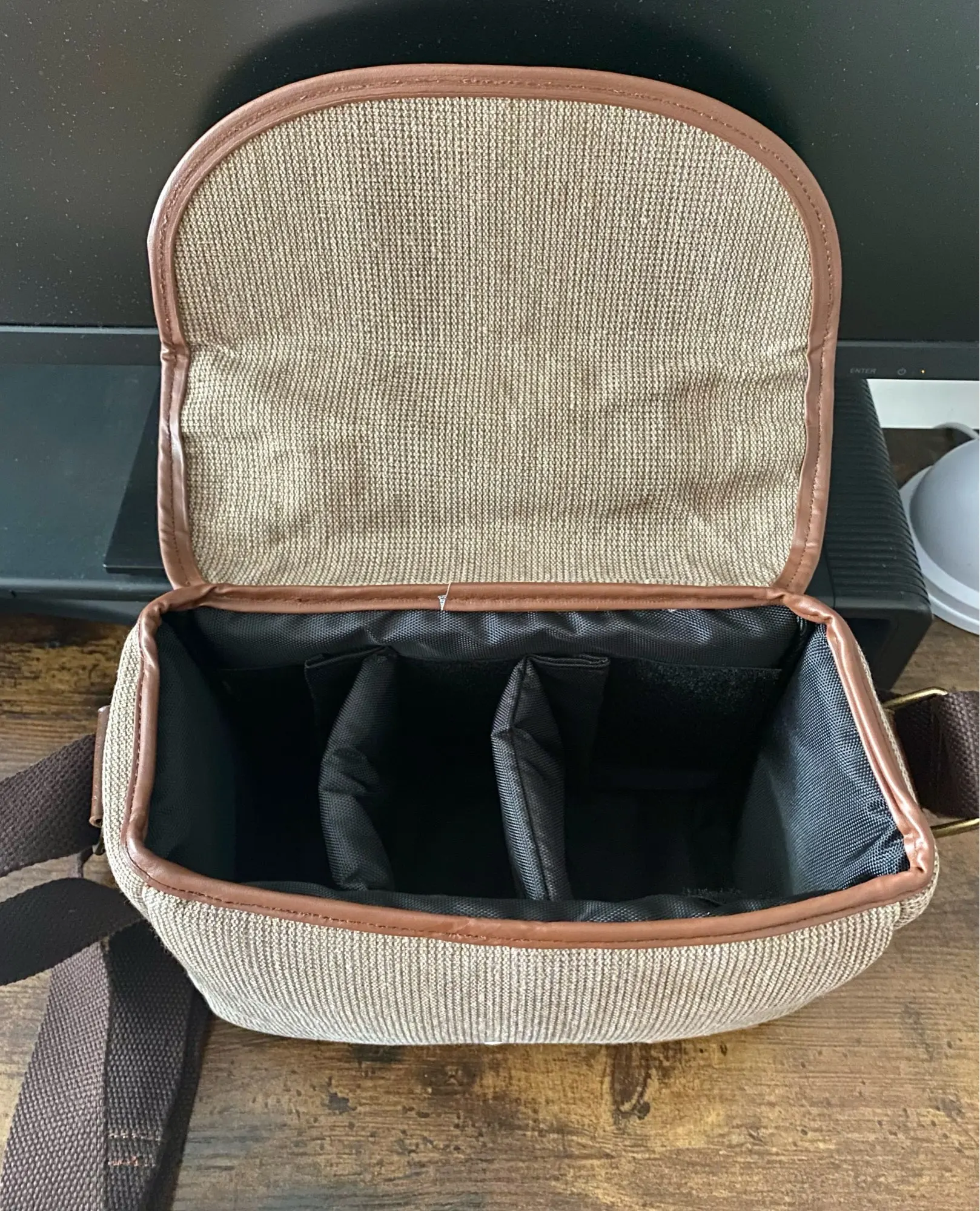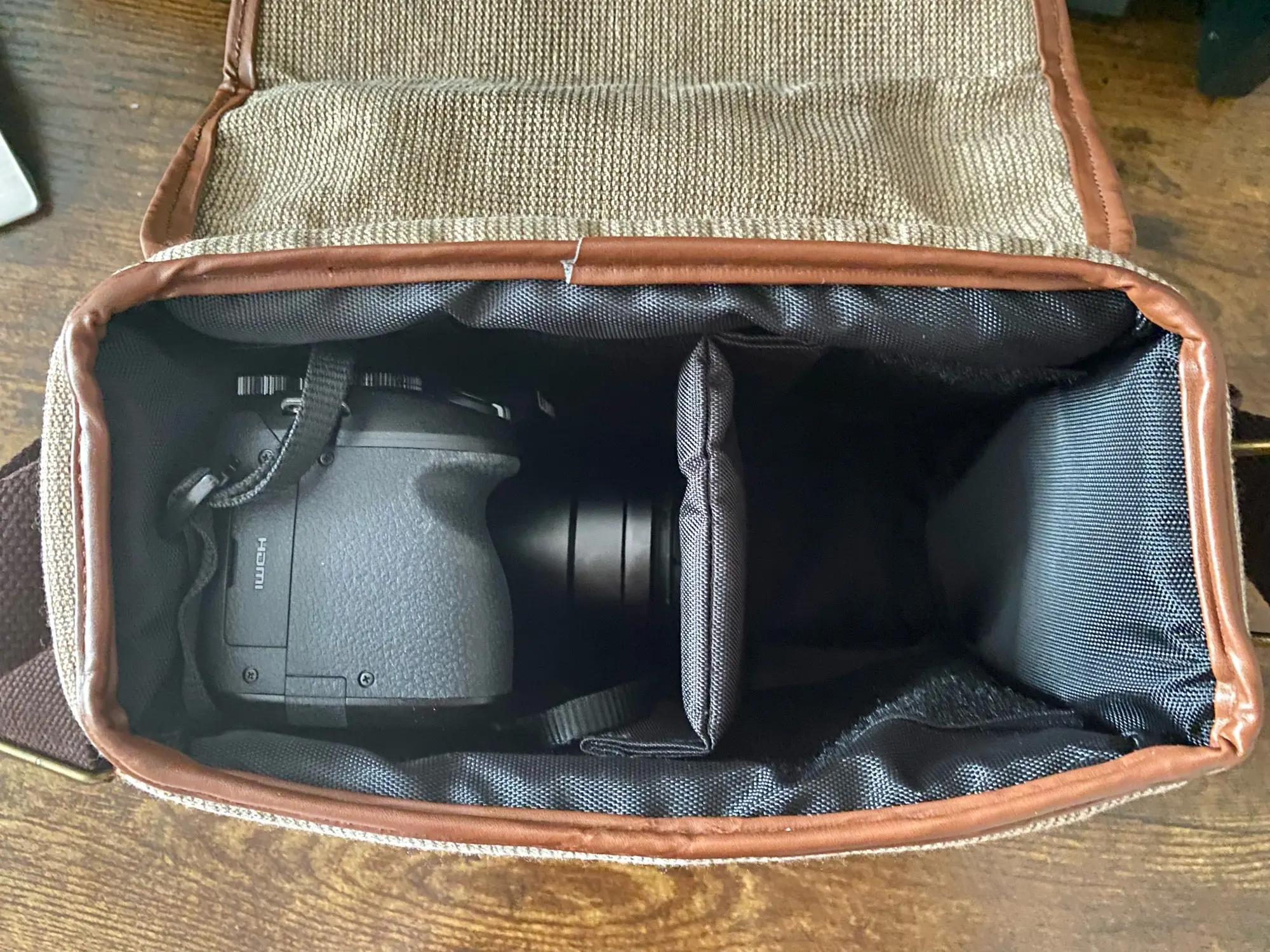 очень добротная сумка среднего размера. мне идеально подошла под маленький Olympus pen и объектив со всеми причиндалами
