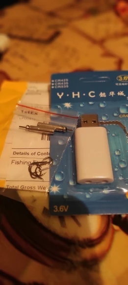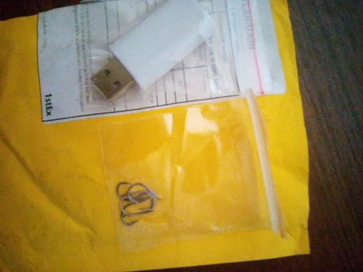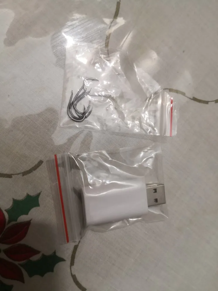 Посылка пришла с подарками (крючками рыболовными и светляками в упаковке 2 шт.). Спасибо продавцу.