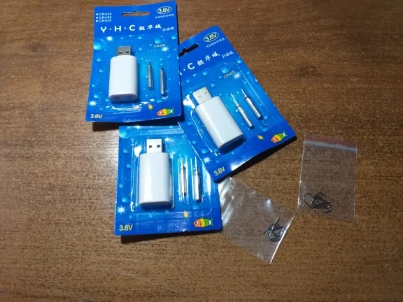пришла с заряженными батареями.Все работает.В подарок продавец кинул крючки '6'