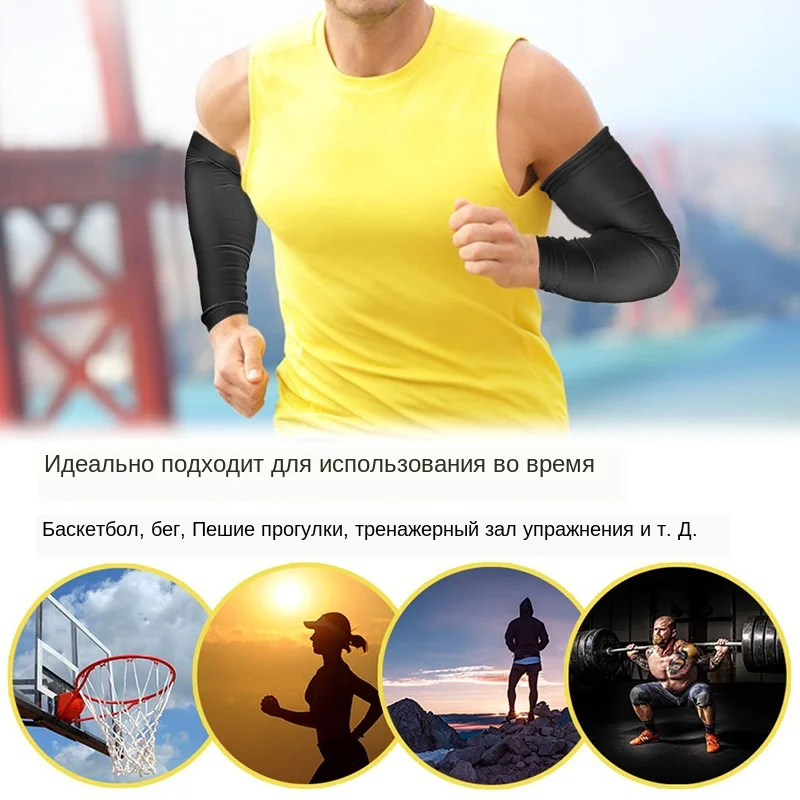Компрессионные нарукавники для занятий в тренажерном зале, защита для бега, баскетбольные налокотники, поддержка фитнеса, езды на велосипеде, защита от солнца и ультрафиолета