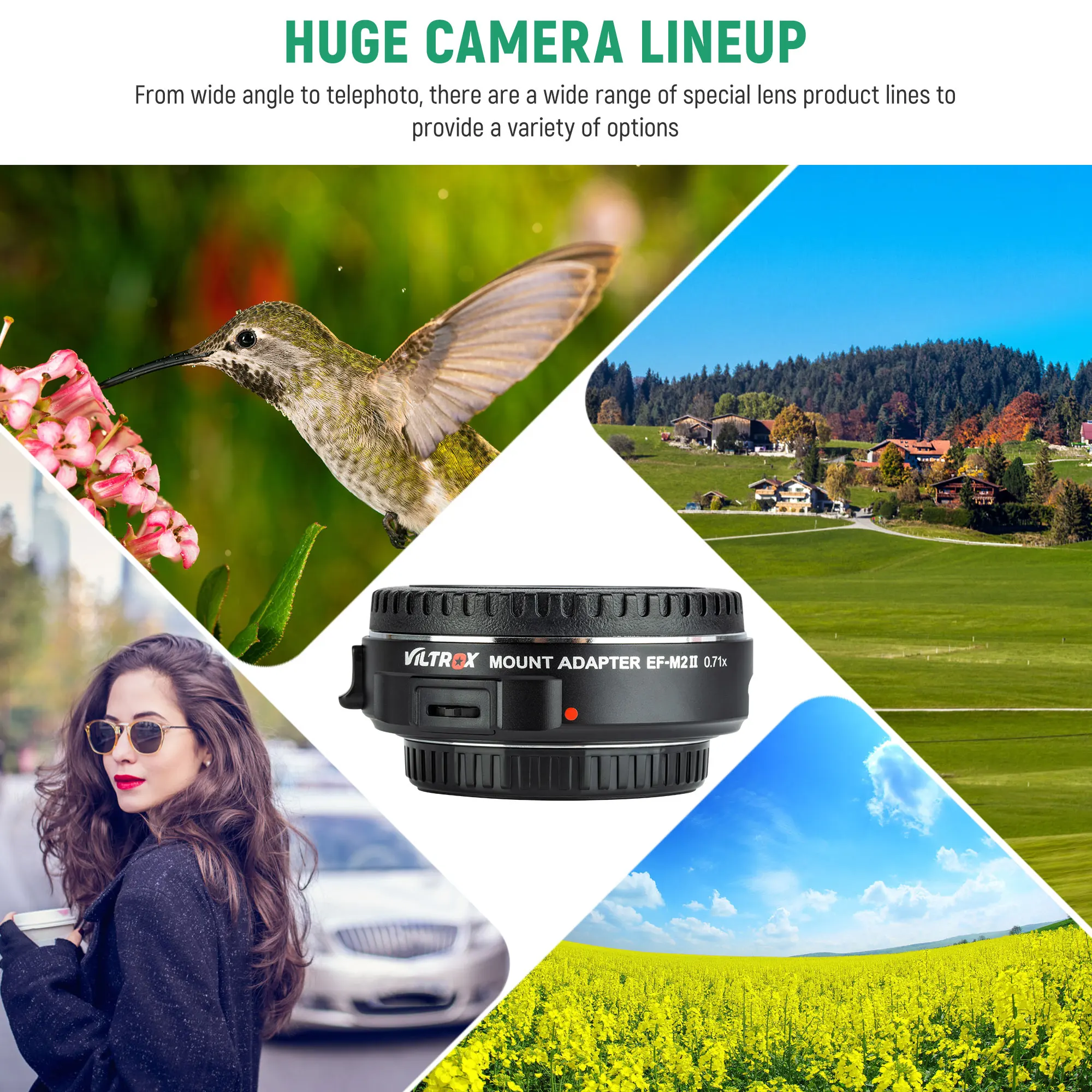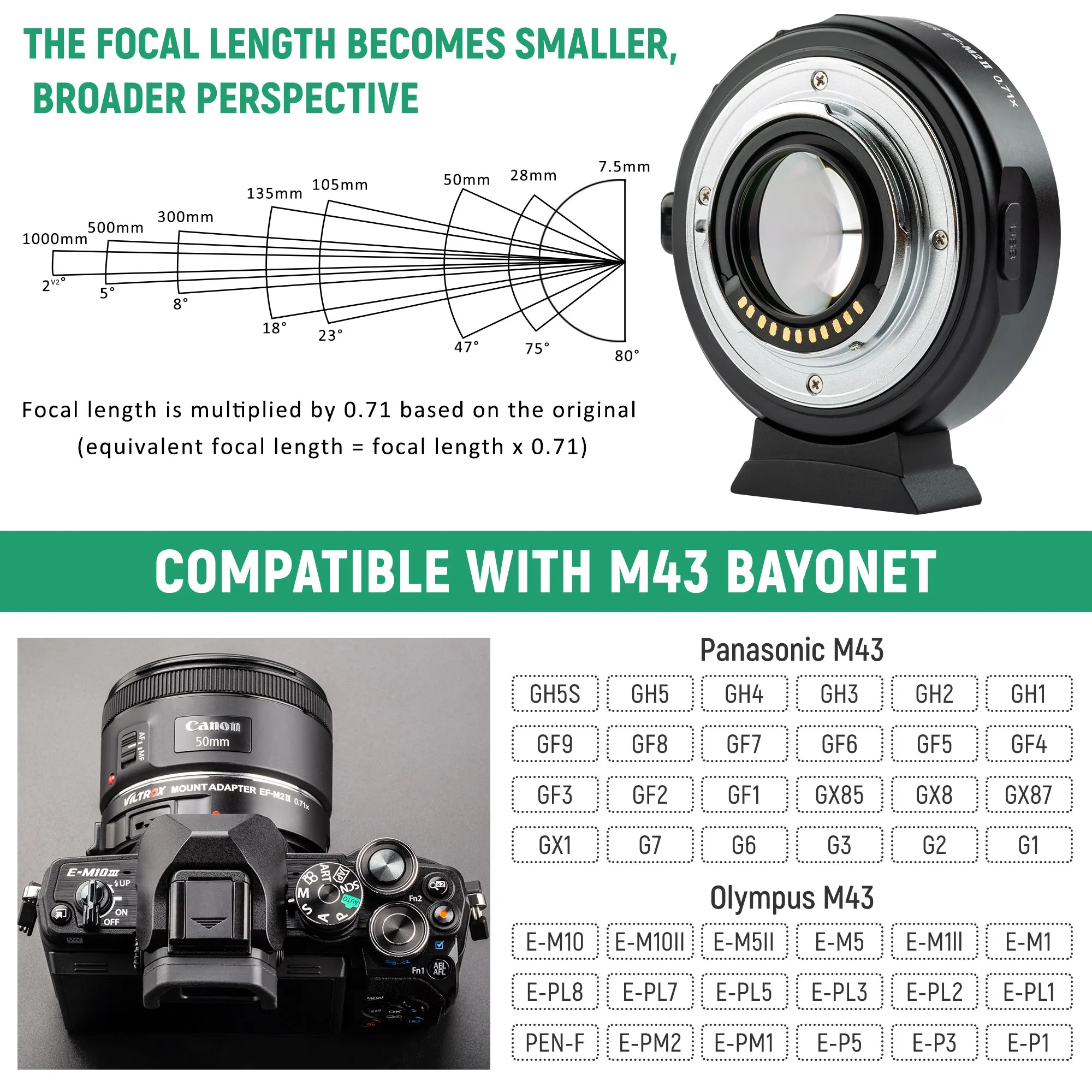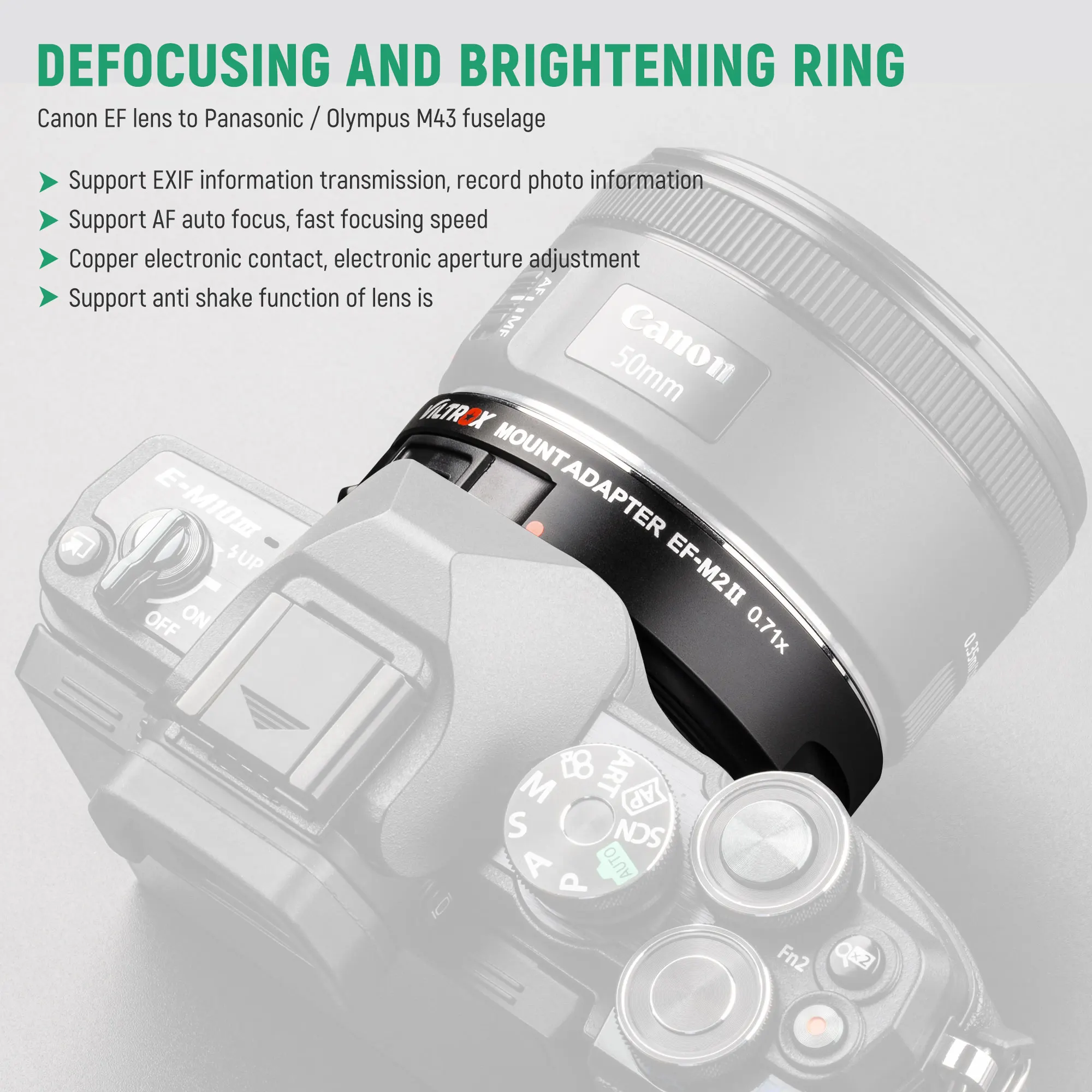 Усилитель скорости Viltrox EF-M2II, переходник фокусного расстояния с автофокусом 0,71x для крепления объектива Canon EF к камере Panasonic Olympus M43