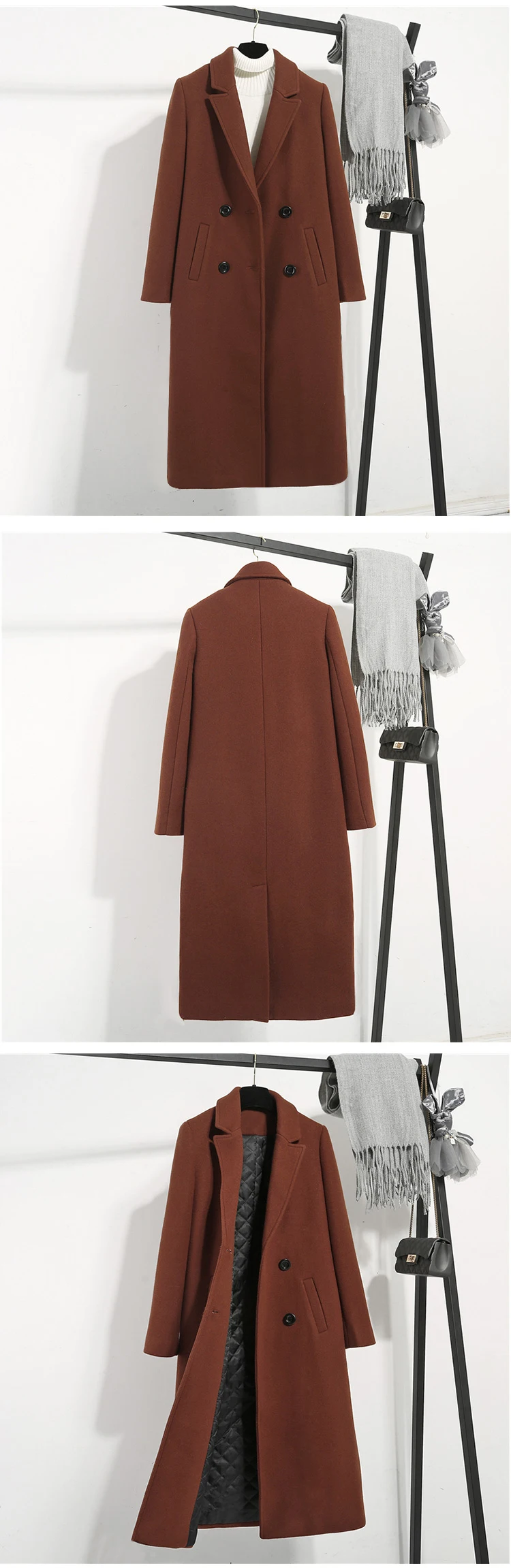 Женская шерстяная куртка карамельного цвета, повседневное приталенное утепленное длинное пальто, Осень-зима 2021