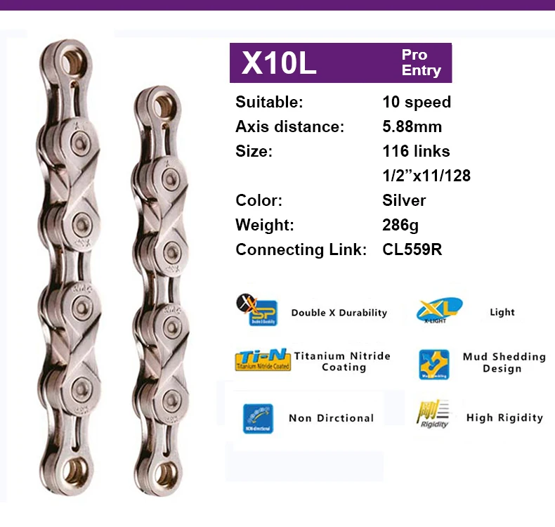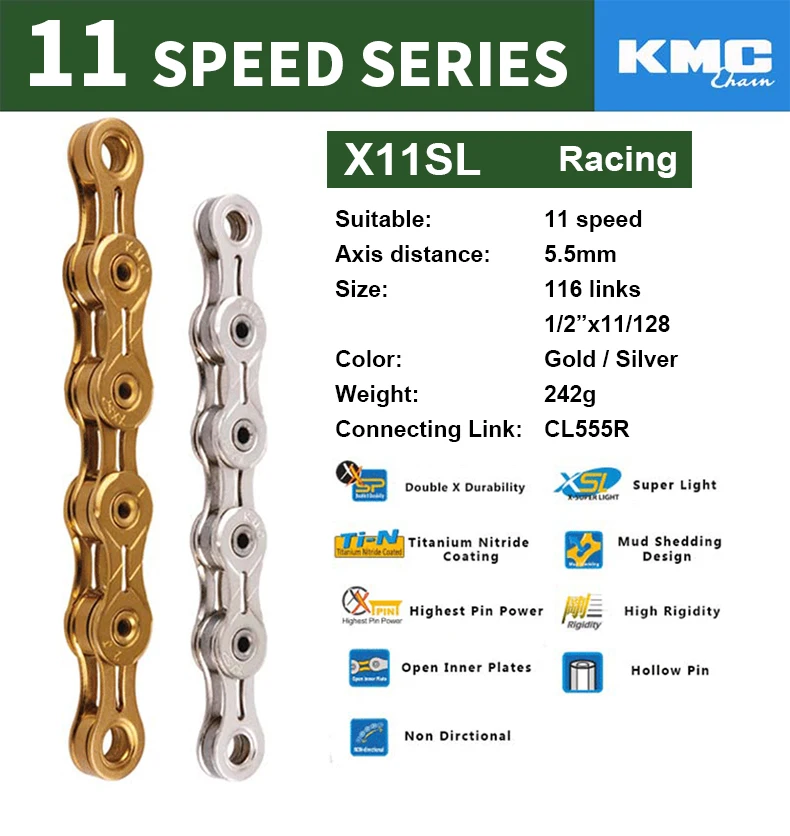 Велосипедная цепь KMC X 89101112 Скоростей, Легкая Цепь для тренировки, езды на велосипеде