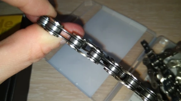 Я конечно не специалист в цепестроении, но цепь имеет большой зазор между внутренним и внешним звеном (примерно 2мм при поперечном изгибе). Цепь в консерванте. Пока сезон закрыт, сказать не могу как она в ходу. Доверия не вызывает.