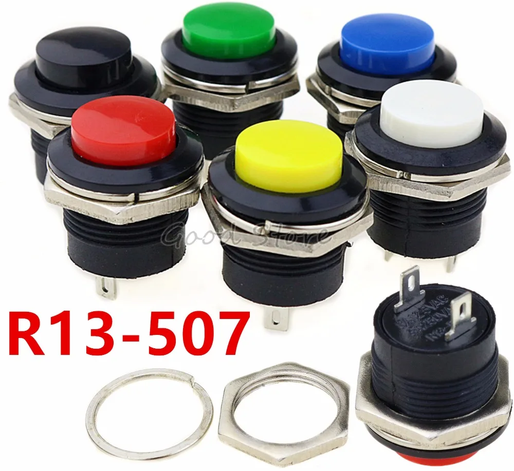 Кнопочный переключатель, 6 цветов, R13-507 Мгновенный SPST, 6 цветов, красный, черный, белый, желтый, зеленый, синий
