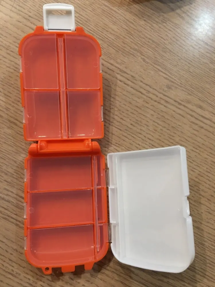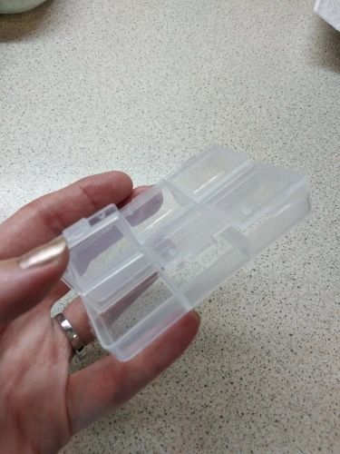 Все хорошо, много отделений, коробочка не маленькая, центральная секция не фиксируется. Крышечки слотов имеют пластиковые сгибы, думаю, через некоторое количество открываний-закрываний сломаются.