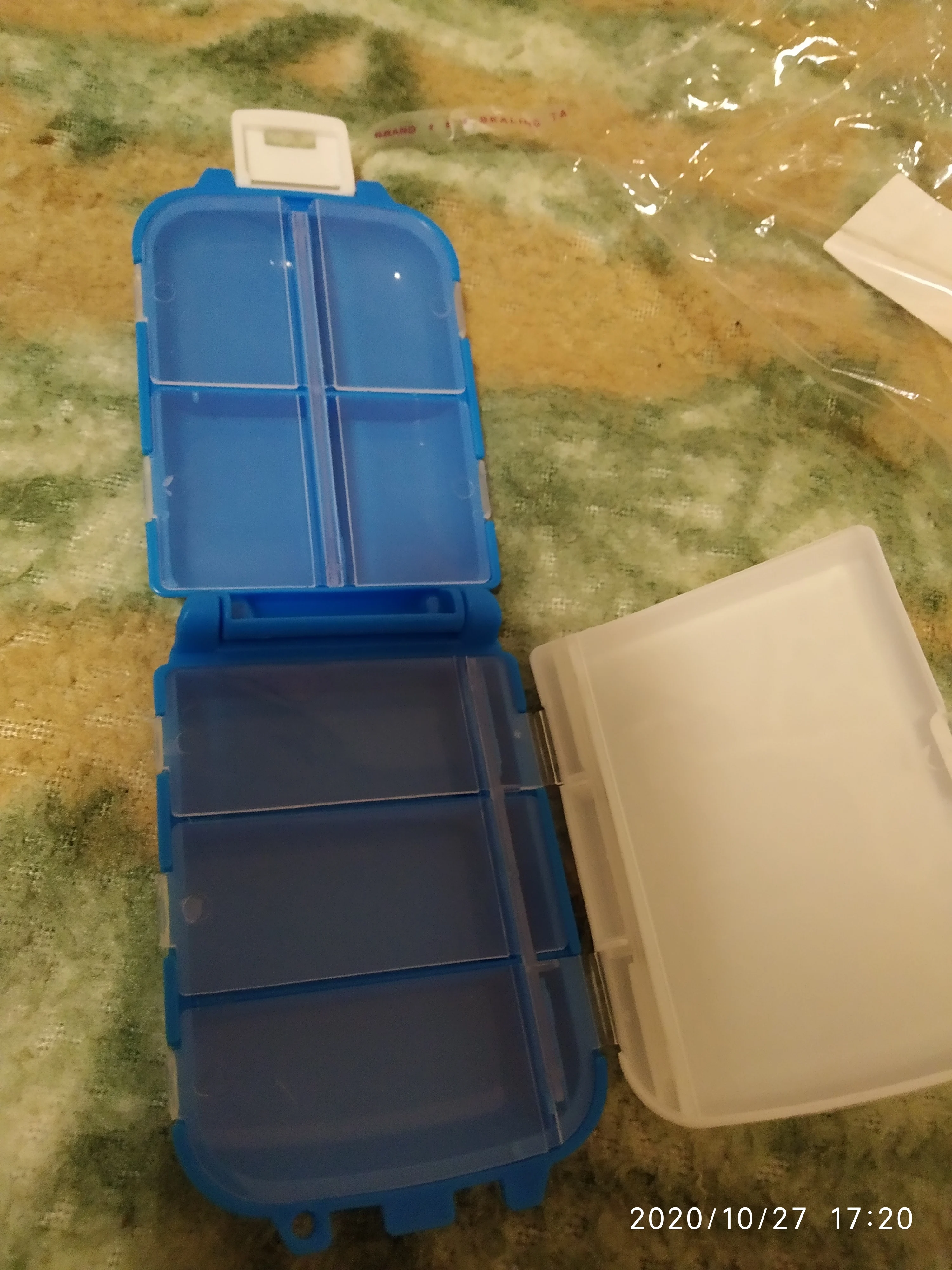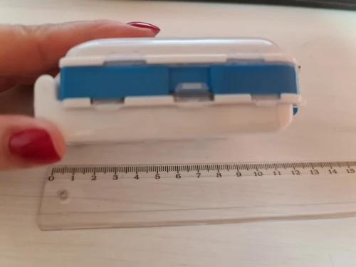 Таблетницу получила вовремя...размер хороший..внутри можно положить много таблеток...супер в дорогу брать...классная...продавцом и таблетницей довольна...