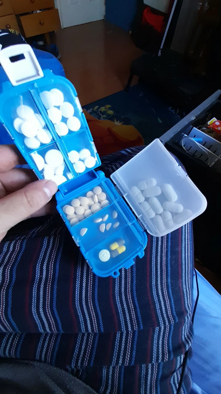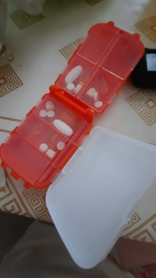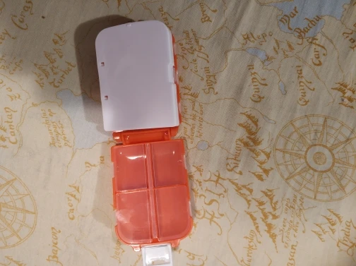 Заказ шёл около 1,5 мес. Думала будет чуть больше, но ничего страшного. Закрывается плотно. Помещается около 3-4 некрупных таблеток в 1 отдел )