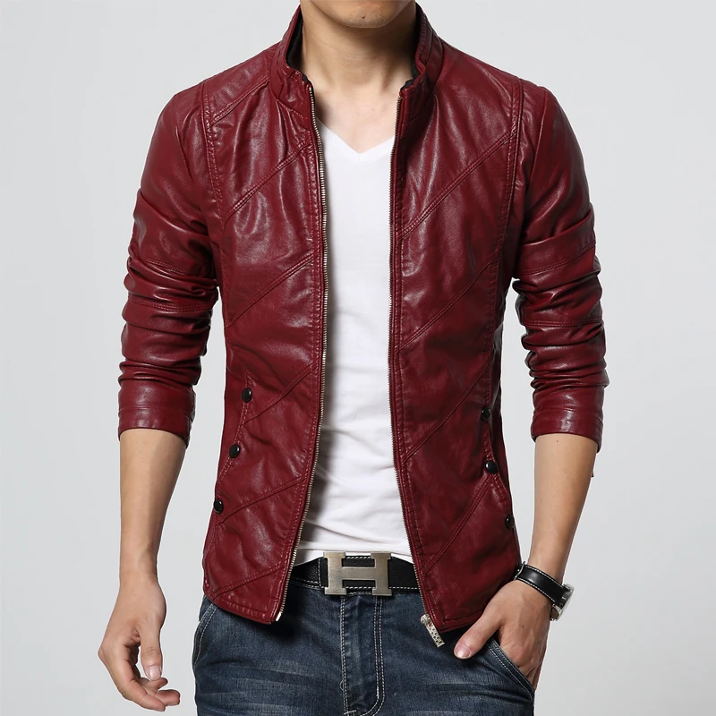 2019 весна и осень мужская повседневная кожаная куртка мужская кожаная куртка большого размера мужская красная куртка из искусственной кожи S-4XL