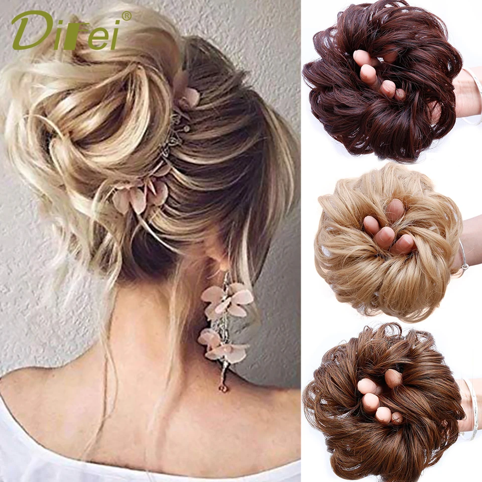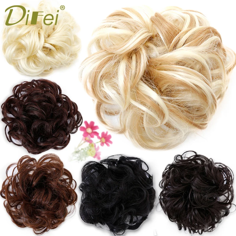 DIFEI вьющиеся волосы, грязный шиньон для женщин, термостойкие синтетические резинки, наращивание волос, пончики, конский хвост