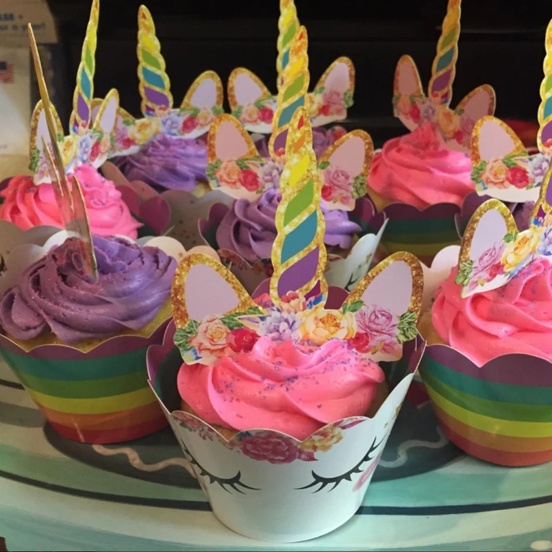 Радужные обертки для капкейков с единорогом, топпер для торта, день рождения украшения для торта для вечеринки, детский праздник, единорог