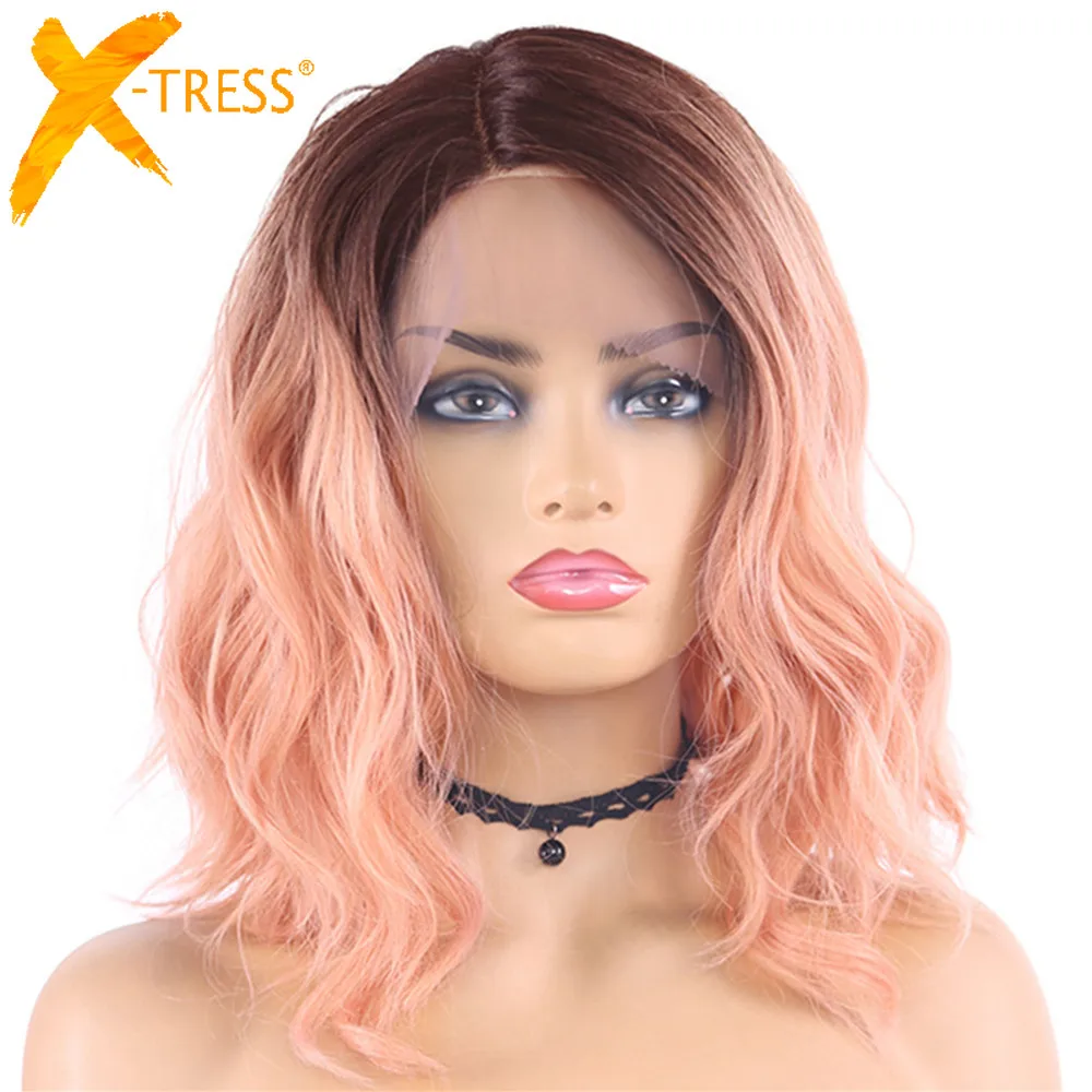 Парики из натуральных волнистых синтетических волос для женщин, X-TRESS, оранжевые, розовые, цвет Омбре, короткие, длина плеч, парики для косплея Боба