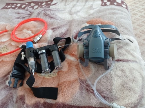 сделано качественно, все работает, если не подключен к подаче воздуха, дышать не получиться, быстросьемы американские на оранжевых шлангах, надо менять под европейские, пока не нашел где их взять, тогда проверю работоспособность в деле, брал для автопокраски, можно советовать другим, главное решить вопрос с быстросьемами