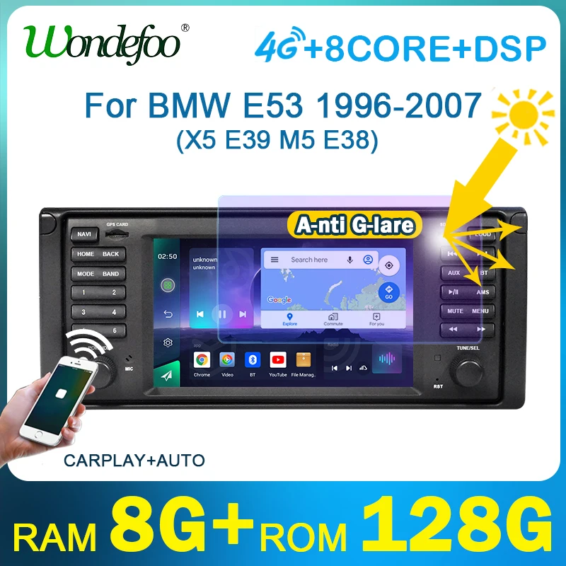 Автомагнитола WONDEFOO 8G 128G 2 din android 11, стерео экран для BMW X5 E53 E39 с Carplay, интеллектуальные видеоплееры 2 din