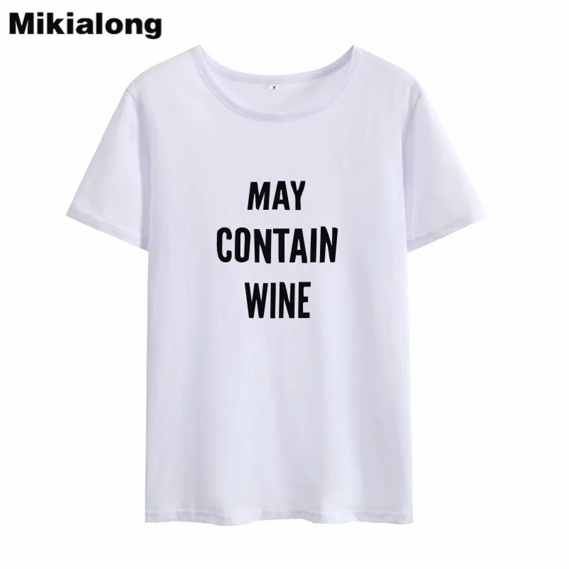 Милая футболка Mikialong с надписью May содержит вино, Женская свободная хлопковая Футболка 2018 с коротким рукавом, Женская свободная футболка черного и белого цветов