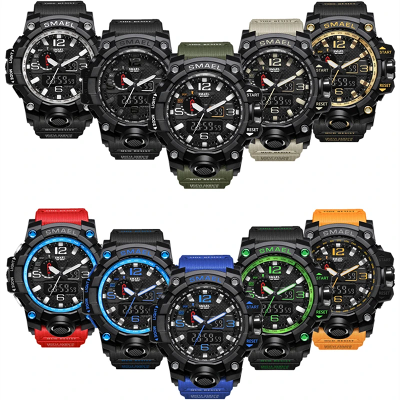 Часы SMAEL Мужские кварцевые, роскошные брендовые водонепроницаемые спортивные аналоговые светодиодный ные цифровые в стиле милитари, для активного отдыха