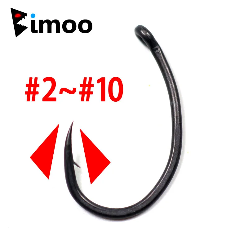 Bimoo 20 шт. крючки для карпа из высокоуглеродистой стали, матовый черный с микрозазубринами, размер 2, 4, 6, 8, 10, рыболовный крючок для карпа Yn, Европа