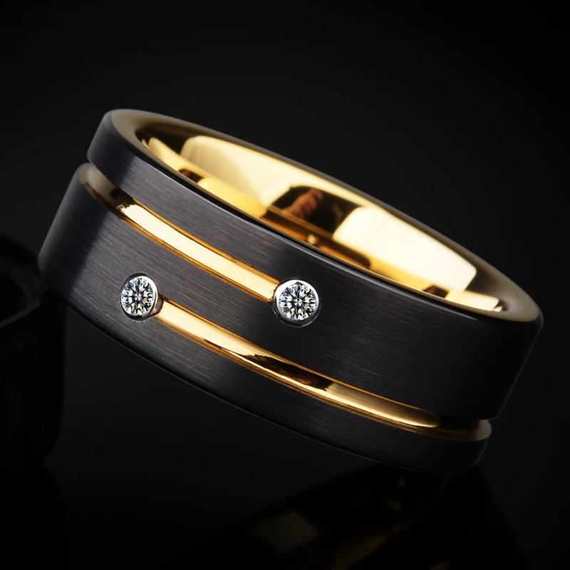 Новинка 2021, высокополированные мужские обручальные кольца шириной 8 мм, золотистыечерные двухцветные вольфрамовые кольца с золотистым пазом, CZ камень, размер 6-13