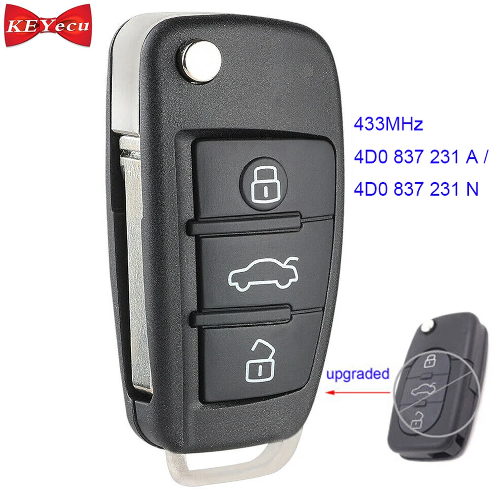 KEYECU для Audi A3 A4 A6 A8 Quattro TT, обновленный Автомобильный Брелок дистанционного управления, 433,92 МГц, PN: 4D0 837 231 A 4D0 837 231 N