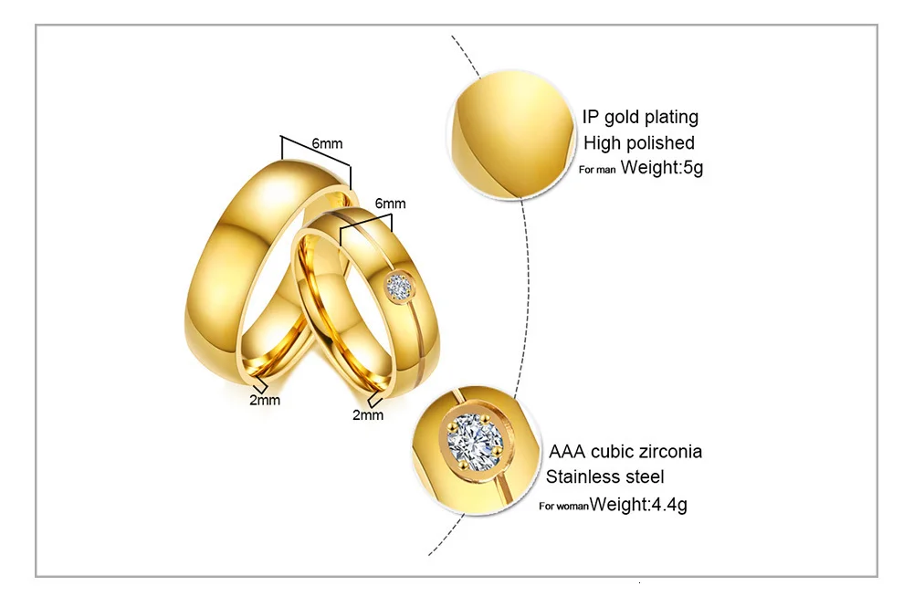 Обручальное кольцо из нержавеющей стали, 6 мм, золотого цвета
