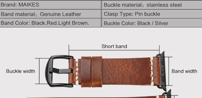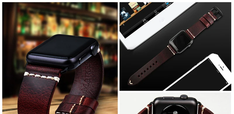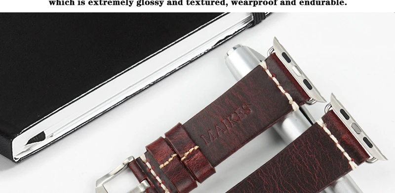 Ремешок MAIKES из натуральной кожи для Apple Watch Band 44 мм 40 мм 42 мм 38 Series 6 5 4 3 2, черный браслет для iWatch, браслет для наручных часов