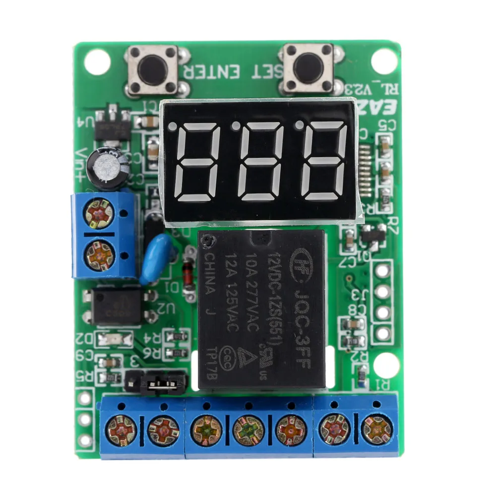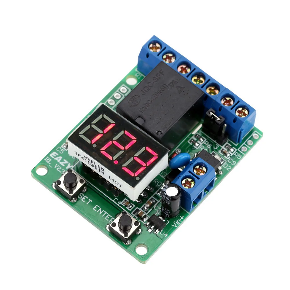 Особенности:Цифровой дисплей, Обнаружение напряжения постоянного тока, контроль релейного выхода.Регулируемый лимит напряжения: 0-99,9 В.Когда измеренное напряжение ниже, чем нижний лимит или выше, чем верхний лимит, реле работает.Используется для переключателя обнаружения напряжения, защиты аккумулятора от перегрузки/понижения напряжения или измеритель расхода. Обратите внимание:Контрольная панель реле имеет функцию обнаружения напряжения в одном режиме.Макс. Ток триггера 10 А (277 в перем. Тока, 30 в пост. Тока), пожалуйста, не подключайте его к нагрузке более 30 В постоянного тока.Этот релейный модуль не подходит для разрядки литиевой батареи.Полярность для обнаружения напряжения не может быть надежно подключена, пользователь должен подключить провод после выключения питания. Технические характеристики:Напряжение реле: 12 в пост. ТокаРабочая мощность: Постоянный ток 10-16 ВДиапазон обнаружения напряжения: постоянный ток 0-99,9 ВПогрешность: +/-0,1 VДиапазон времени: 0-999 минут циклаНабор трансформаций (обычное открытие/обычное закрытие)Договорная нагрузка: 10 А/277 В переменного тока, 10 А/30 В постоянного токаСопротивление контракта: ≤ 100 МОм (1a-6в постоянного тока)Механическая прочность: >10 миллионов разЭлектрическая прочность:> 100000 раз (10a-250в переменного тока)Ток в режиме ожидания: 16 мА 12 В, цифровой дисплей закрыт меньше 6 мА/12 В, реле своевременно 45 мА/12 ВРабочая температура: -40-85 °CРазмеры: 50*40*20 ммВес: 27 г/0,95 унций Посылка список:1 * Контроль релейного переключателя модуль