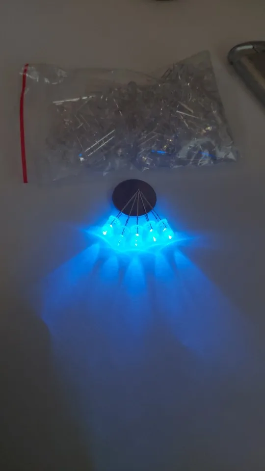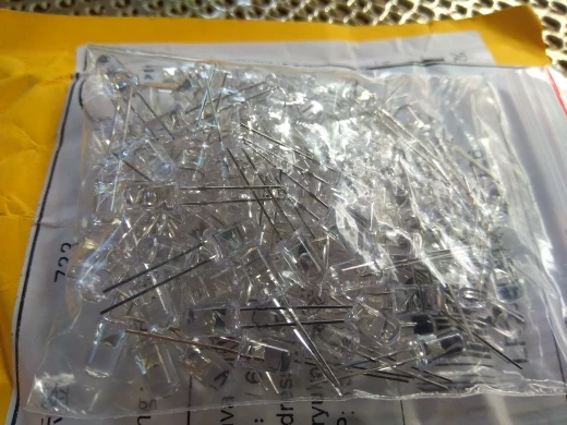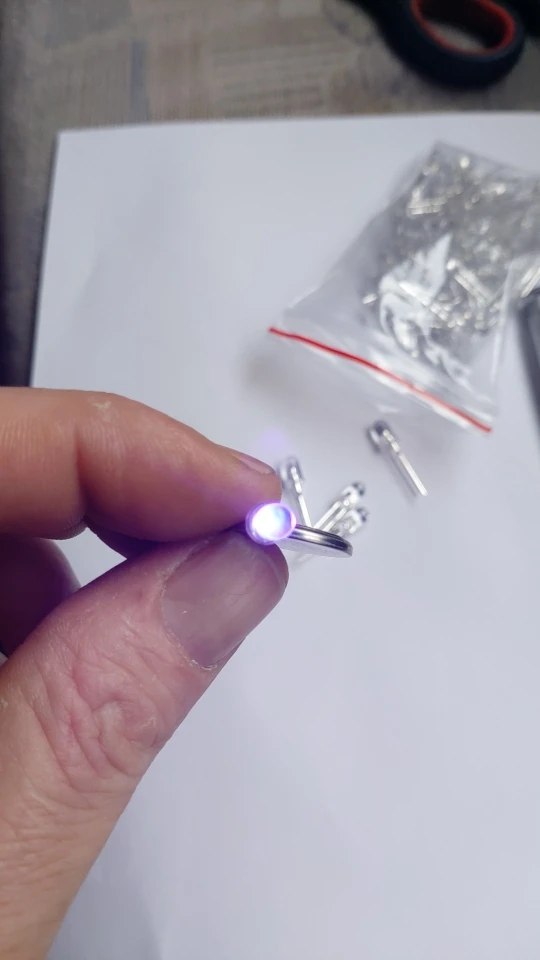 диоды хорошего качества, пришли в мягкой упаковке, но все целые. Количество соответствует. Запаял в старый фонарик вместо белых, 23 штуки, из которых один оказался не рабочий. в целом светят ярко, на денежной купюре водные знаки проявляет и вкрапления в бумаге тоже засвечивает. Брал для сушки уф клея, с задачей справляются.
