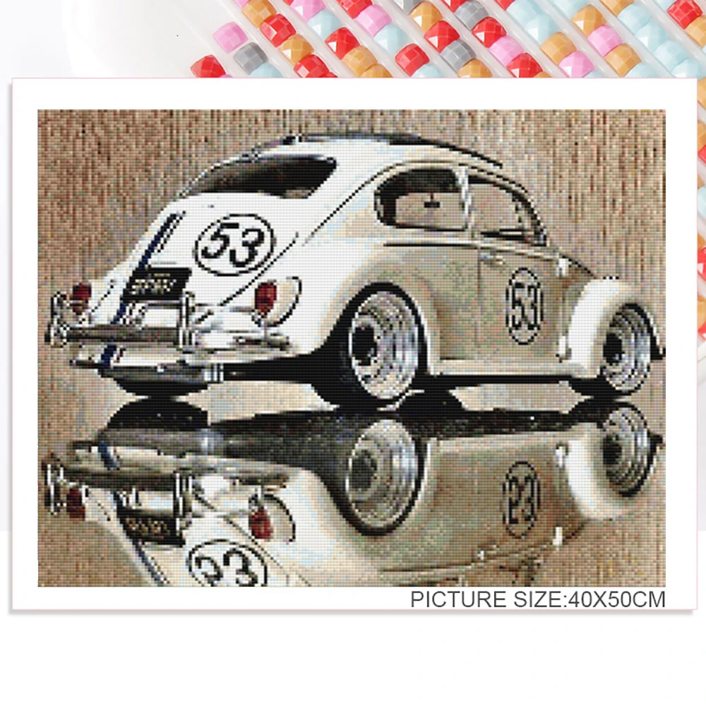 Алмазная 5d картина сделай сам, вышивка с белым автомобилем, вышивка крестиком, квадратная круглая мозаика, украшение ручной работы, хобби, подарок
