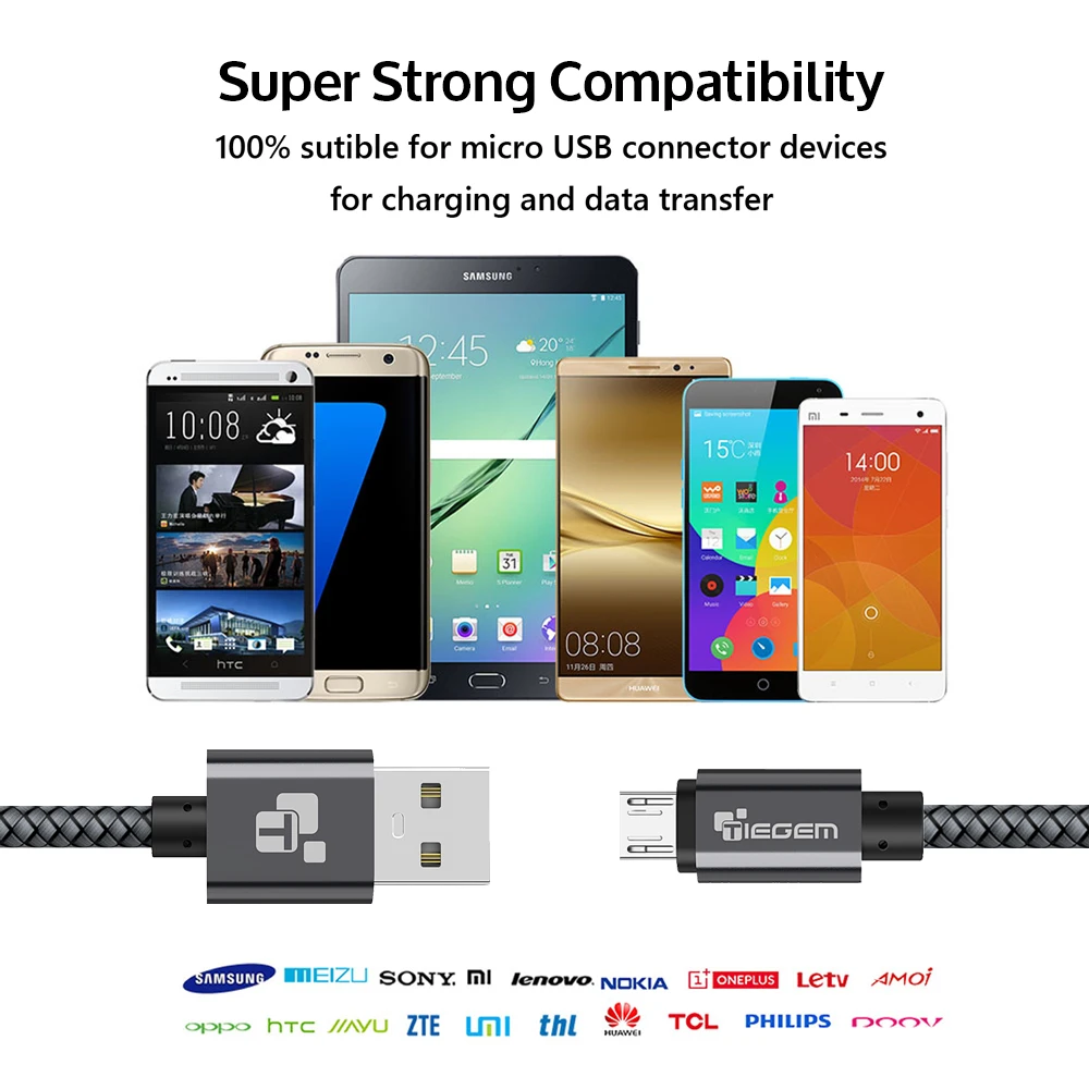 Кабель Micro USB TIEGEM 2A для быстрой зарядки, 50 упаковок, USB-кабель для передачи данных, мобильный телефон зарядный кабель для Samsung, Xiaomi, Huawei, кабель для Android